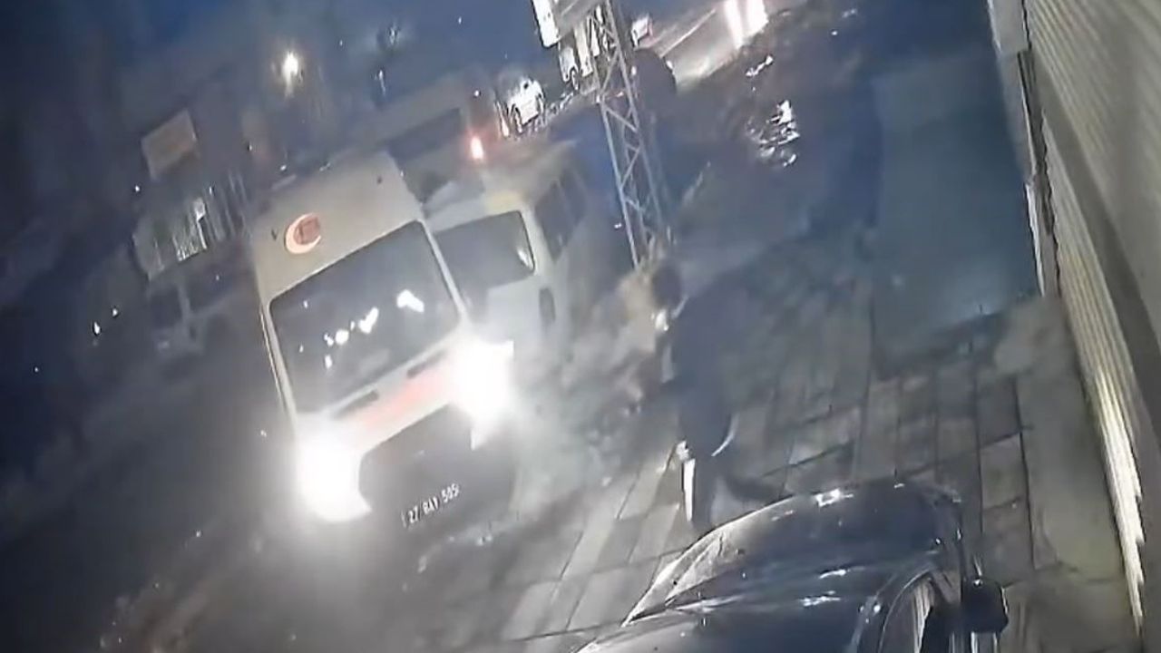 İşçi minibüsü de kayan ambulansa arkadan çarptı. Araçların ağır hasar aldığı kazada şans eseri can kaybı ya da yaralanma yaşanmazken, kaza bir iş yerinin güvenlik kamerasına yansıdı.