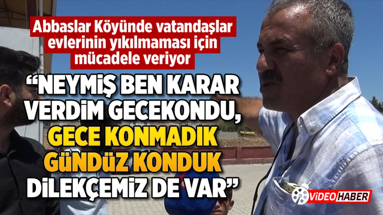 "Bu yıkıma şiddetle karşıyız köylü olarak. Devletimizi yanımızda görmek istiyoruz. Biz Sayın Cumhurbaşkanımızın sözleri var, "Kendi imkanı olan herkes barınma yeri yapabilir" diye. Bize de yardım yapıldı, bu ev için. Dulkadiroğlu Belediyesi Onikişubat Belediyesi, Büyükşehir Belediyesi'nin yardımlarıyla çocuğun ayağından dolayı, ayak diyetini daha açık söyleyeyim aldığı tazminatın tamamını bu eve gömdü. Sayın Bey Fatih Bey bizzat kendisi, Sayın Kaymakam bey 5000 lira da kendisi yardımda bulundu, halen de bulunmaya devam ediyor. Makbuzun iletebilirim. Bugün de yıkım kararı vermiş, şu anda da Kahramanmaraş Abbaslar köyündeki bütün bu halk, bütün bu millet onu bekliyor, kararını bekliyor. Telefonlarını kapatmış, hiç kimseyle görüşme yapmıyor. Köy halkını yok sayıyor.