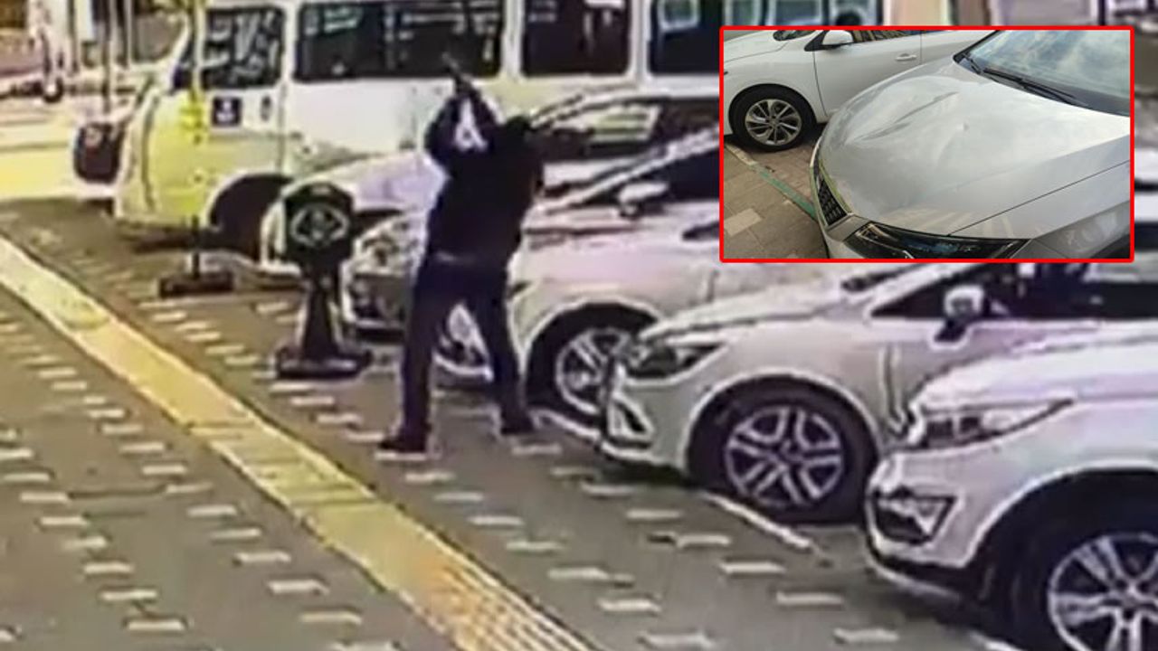 Park halindeki 3 aracın kaputuna balta ile vuran şahsı olay yerine gelen polis ekipleri etkisiz hale getirmeye çalıştı. Polisleri gören şahıs kaçarak arka sokağa girdi. Peşinden giden Devriye Ekipler Amirliğine bağlı polisler, biber gazı kullanarak şahsı etkisiz hale getirerek gözaltına aldı.