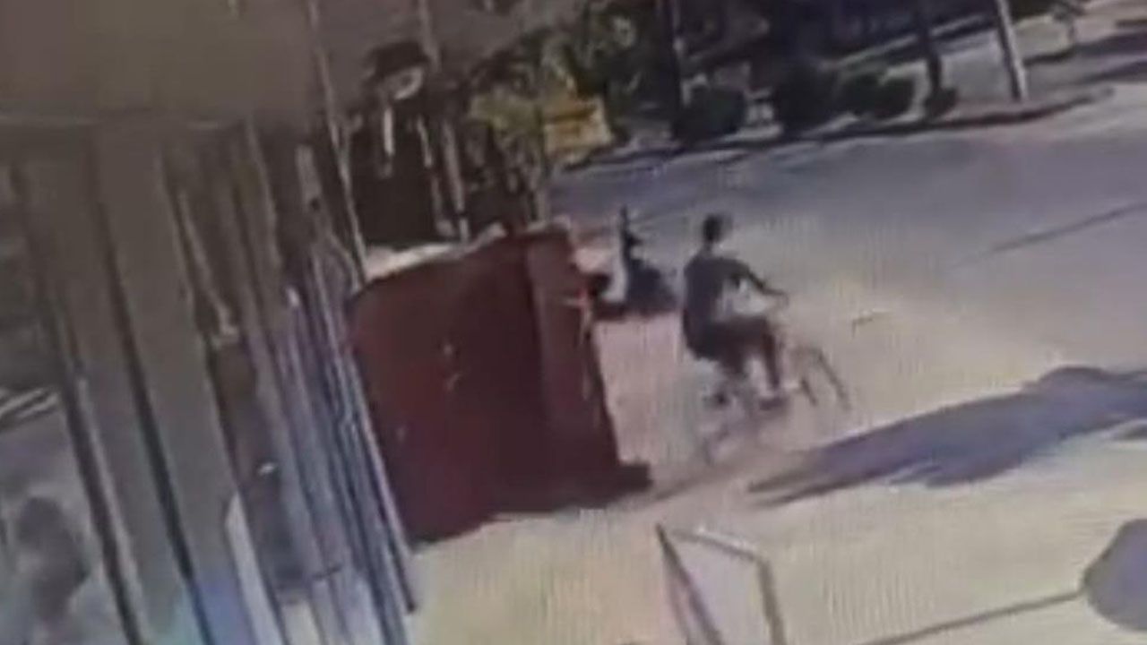 Şüphelinin bisikleti sürerek olay yerinden ayrılması anbean görüntülendi.
