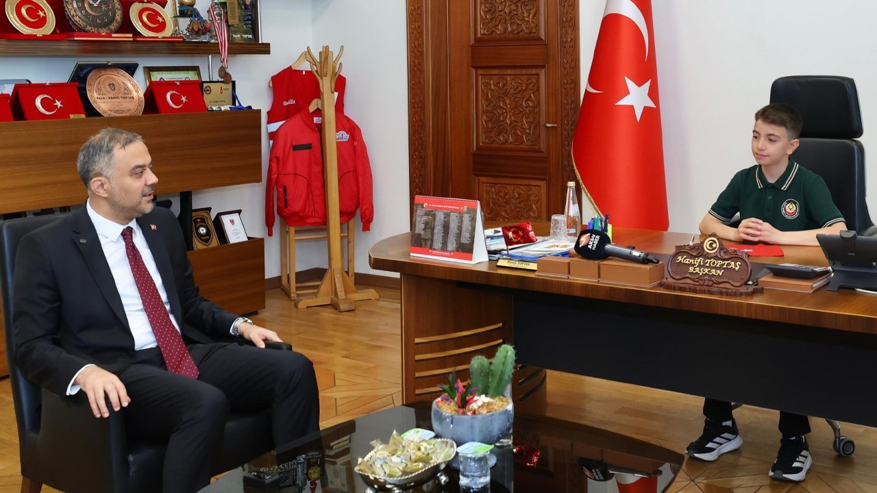Onikişubat Belediye Başkanı Hanifi Toptaş, makam koltuğunu Şehit Ahmet Gülbahar Ortaokulu 5’nci sınıf öğrencisi Halil Sami Kulotu’ya devretti.