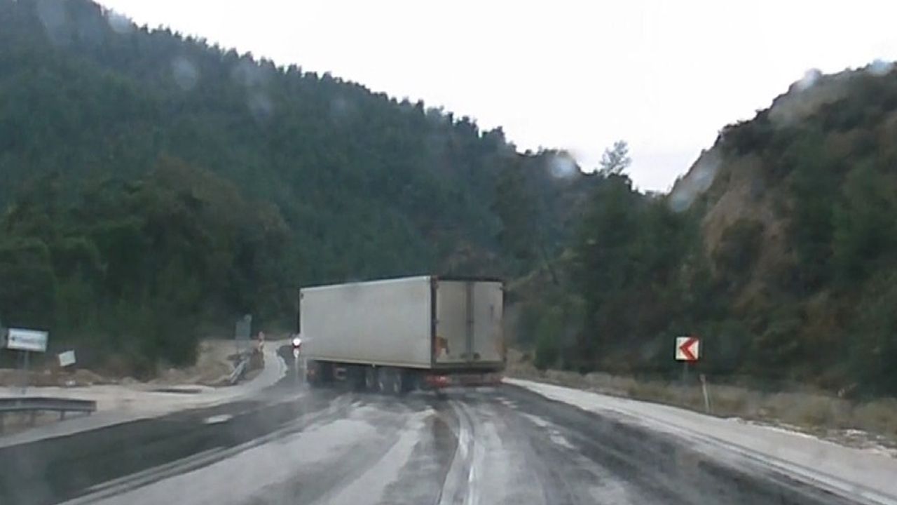 Olay, geçtiğimiz günlerde Burdur’un Ağlasun ilçesine bağlı Antalya–Isparta kara yolunun Isparta istikameti Aşağı Yumrutaş mevkiinde meydana geldi. Edinilen bilgilere göre, yağmurun etkisiyle kayganlaşan yolda kontrolden çıkan bir tır ve dorsesi bir anda savrularak yolu kapladı. Tır sürücüsünün yaptığı manevra sayesinde araç yeniden kontrol altına alınırken, yaşanan tehlikeli anlar tırın arkasından gelen bir otomobilin araç kamerasına saniye saniye yansıdı. Görüntülerde, çift şeritli yolda karşı yönden gelen araçların da bulunduğu ve muhtemel bir facianın kıl payı atlatıldığı görüldü. Olayda herhangi bir yaralanma yaşanmazken, yaşananlar sürücüleri korkuttu.