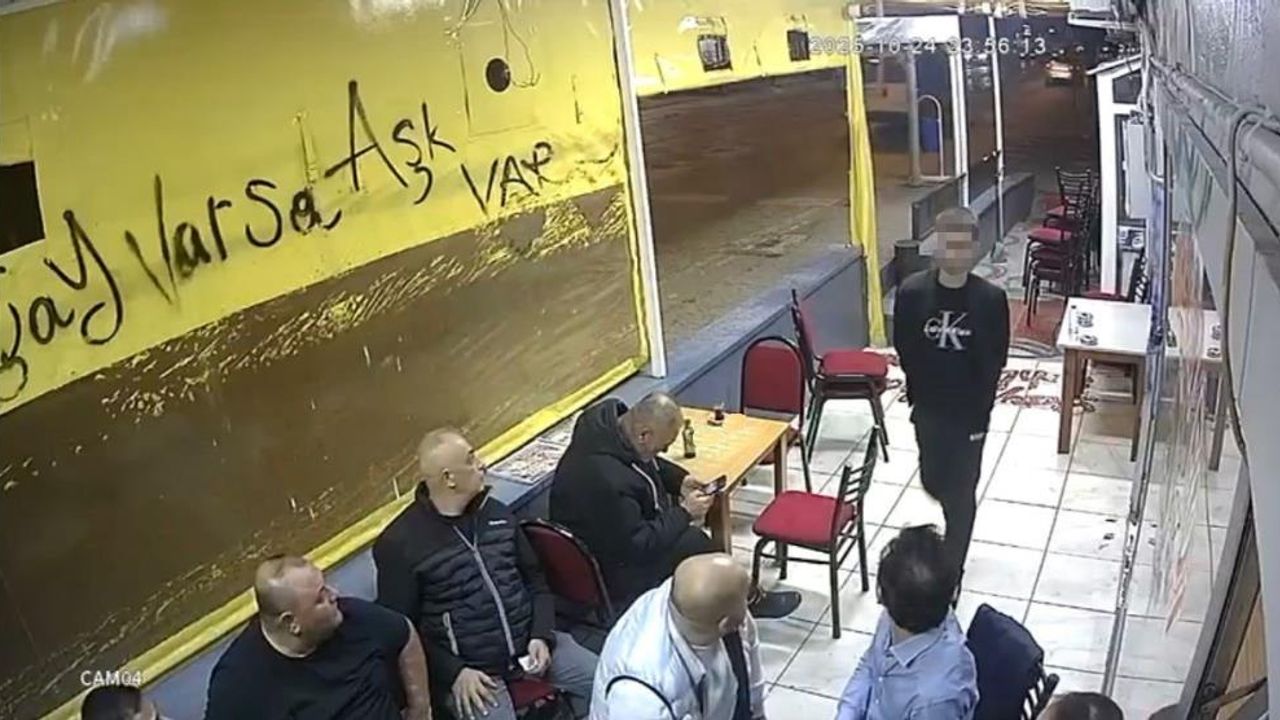 Olay anı, iş yerinin güvenlik kamerası tarafından saniye saniye kaydedildi. Görüntülerde, şüphelinin çay ocağına girerek masadakilerden birine ateş etmesi, yaşanan arbede ve kaçışı yer alıyor.
