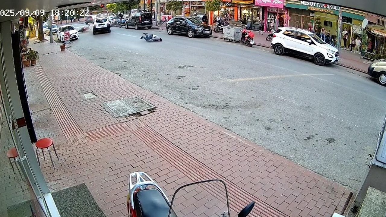 Cipe çarpan motosikletli havaya savruldu: Kaza anı kamerada