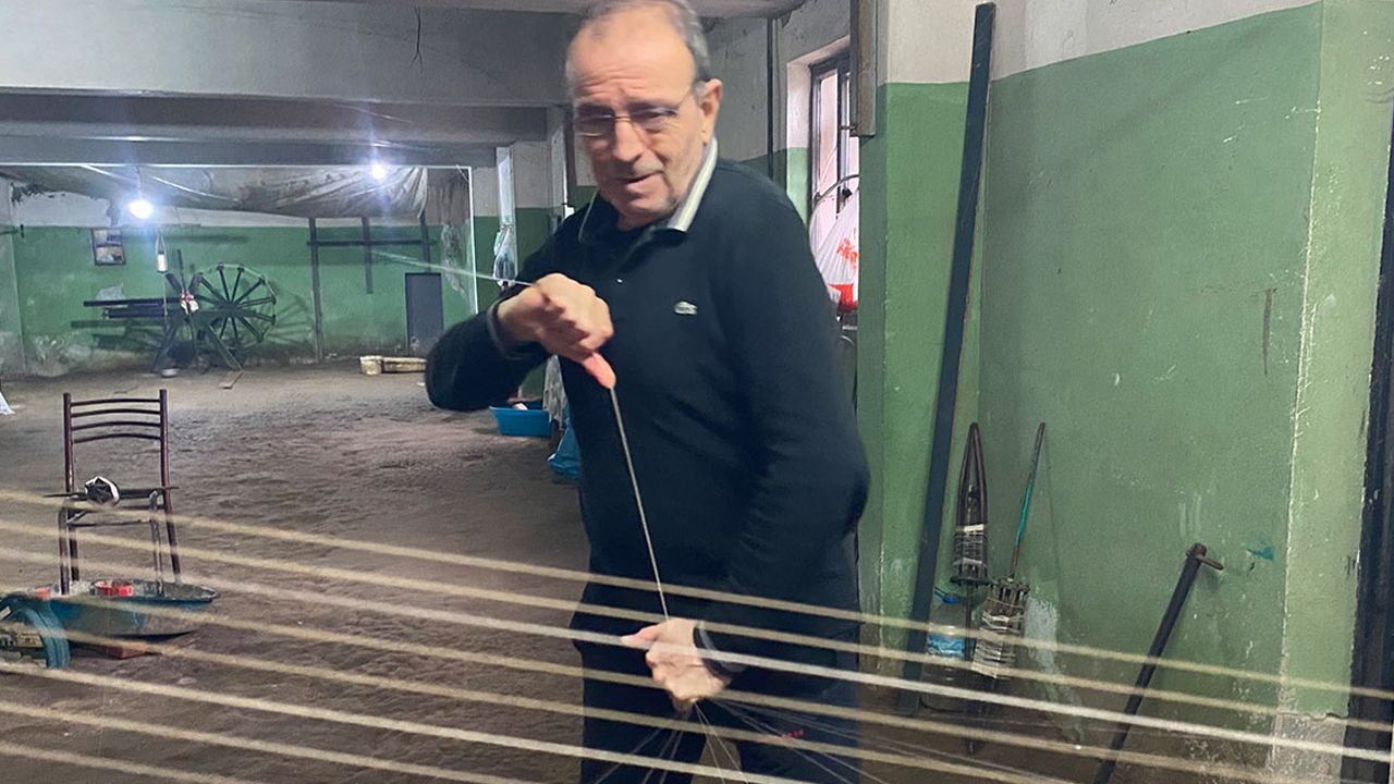 Osmangazi ilçesi Muradiye Mahallesi’nde, Osmanlı’dan günümüze uzanan devdâhlık sanatı, 60 yaşındaki usta Ertuğrul Şengünalp’in adımlarıyla yaşamaya devam ediyor. Çocuk yaşta başladığı bu meşakkatli el sanatını 53 yıldır aralıksız sürdüren Şengünalp, her gün kilometrelerce koşarak ipek iplik üretiyor.