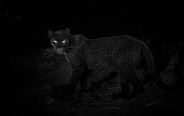 Nesli tükenen hayvanlar arasında kırmızı listede bulunan siyah leopar 100 yıl aradan sonra ilk kez Will Burrard-Lucas isimli bir fotoğrafçı çekmeyi başardı.