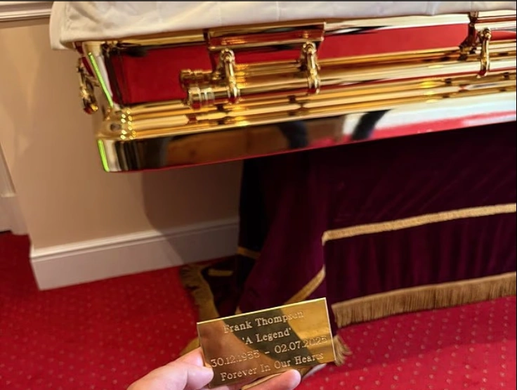 Aile dostu, Frank Thompson'ın çalışkan birisi olduğunu ve dünyaya "gerçekten iyi bir Çingene olduğunu" göstermek için görkemli bir şekilde uğurlandığını söyledi. "Tabut som altından" diyen aile dostu, "Oğlu bunu yurtdışından sipariş etti. Maliyeti muazzamdı, altı haneli. Gelmesi haftalar sürdü. Onu toprağa verebilmemiz neredeyse bir ay sürdü." dedi.