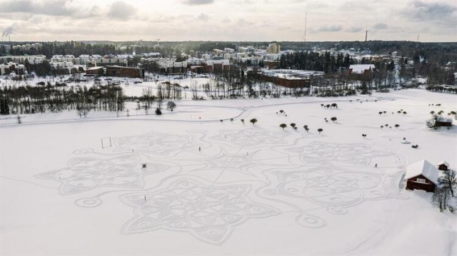 Çaprazlama uzunluğu 160 metre olan eserin, Finlandiya'da bugüne dek karda yapılmış en büyük çizim olduğu tahmin ediliyor.