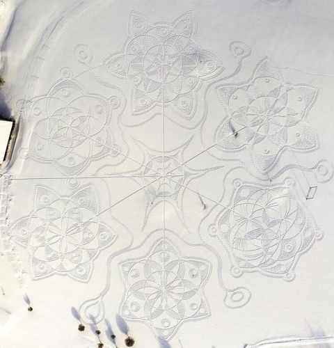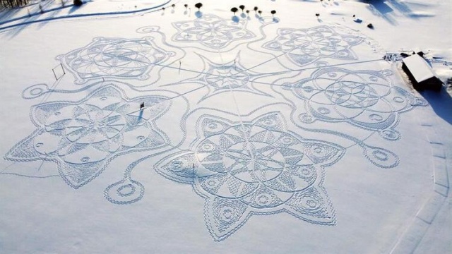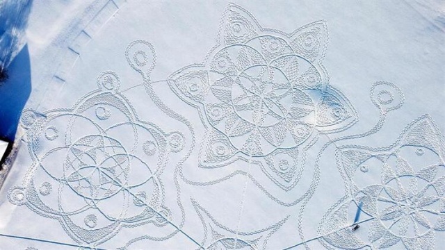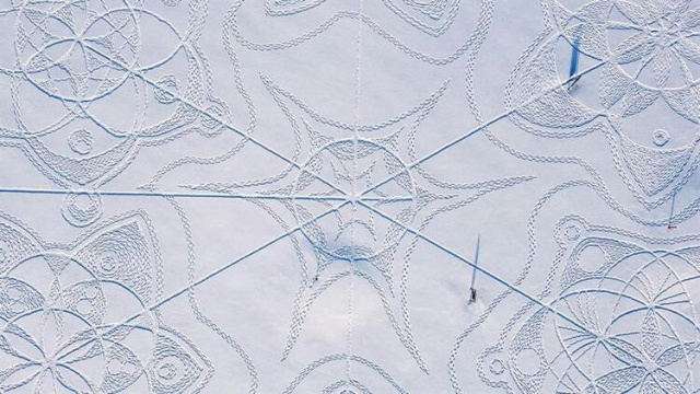 Pyykkö ve ekibi, bu eseri geçen hafta sonu iki günde ip ve kar ayakkabıları kullanarak yarattı.