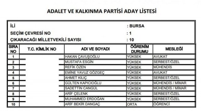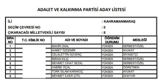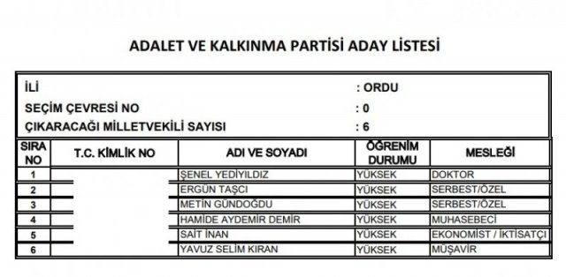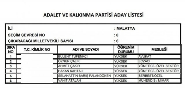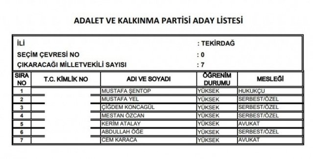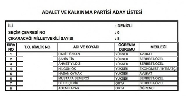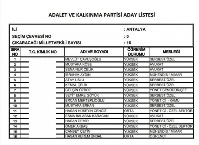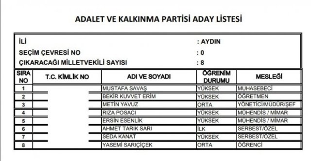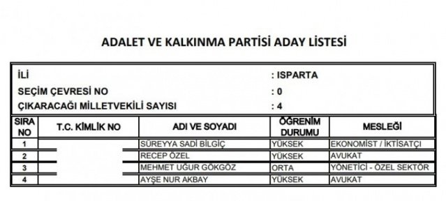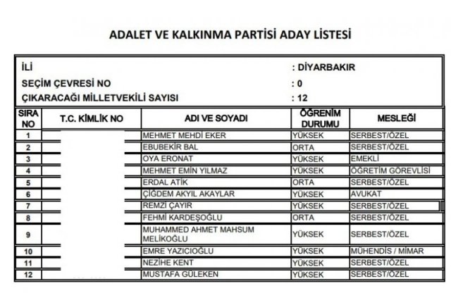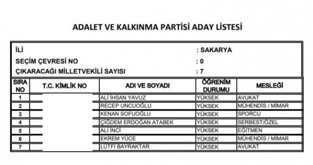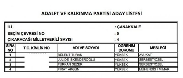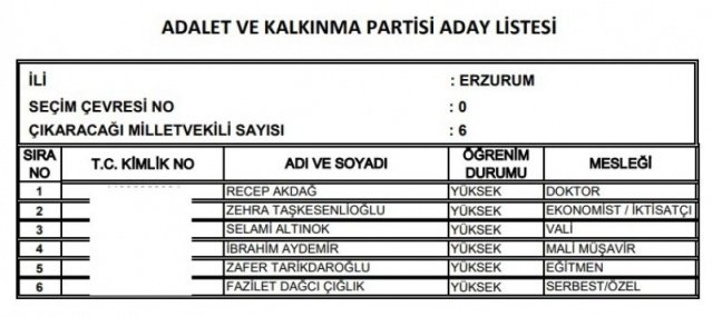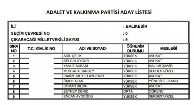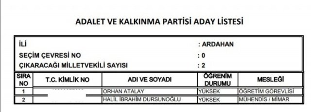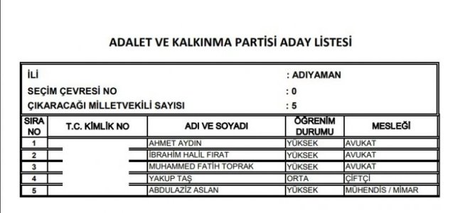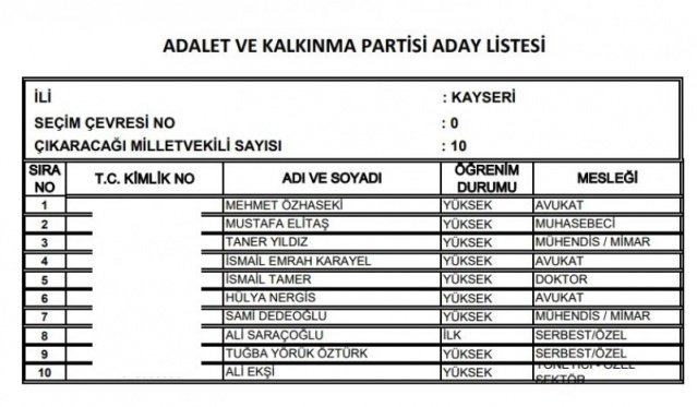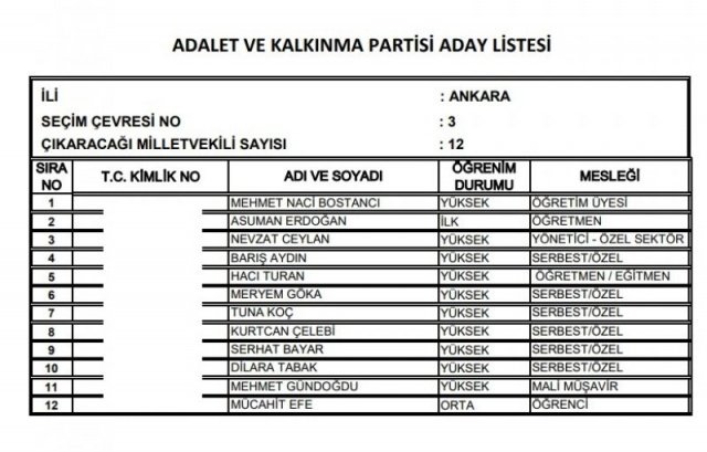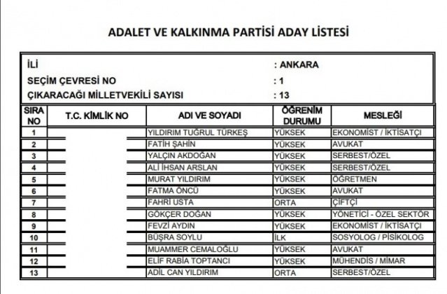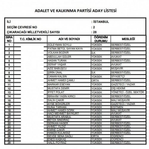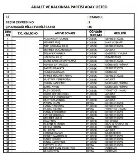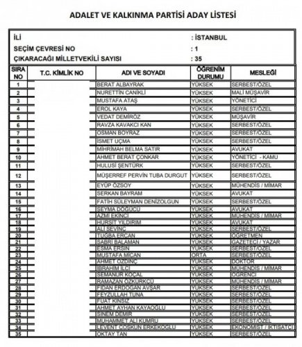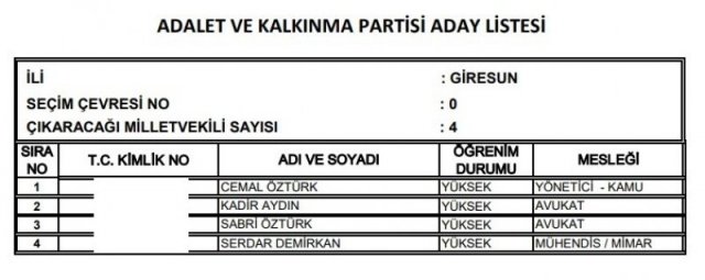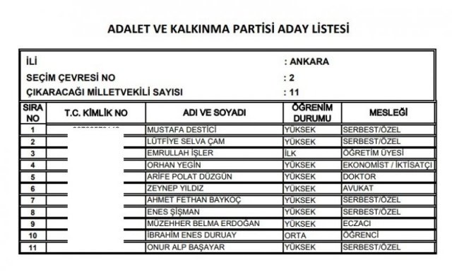 AK Parti'nin aday listesi
