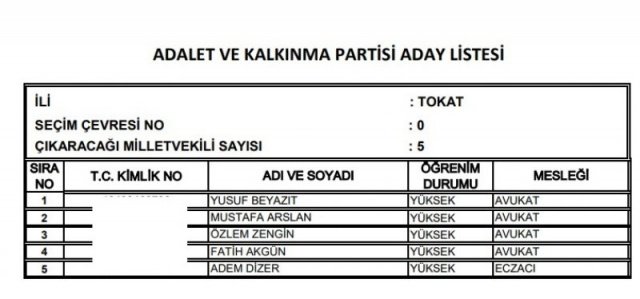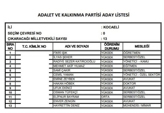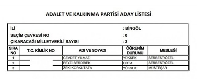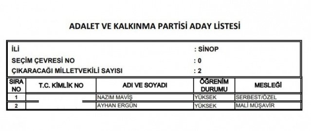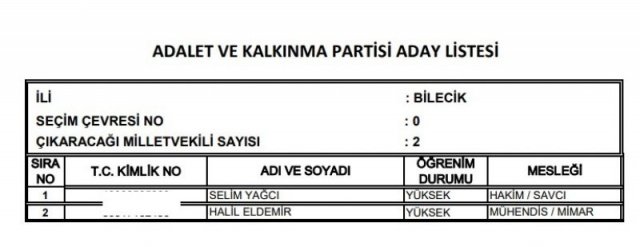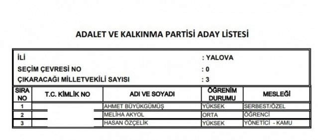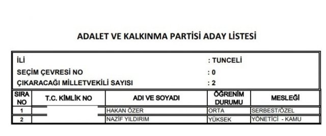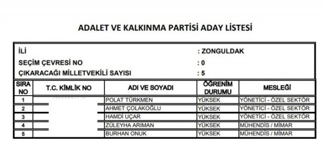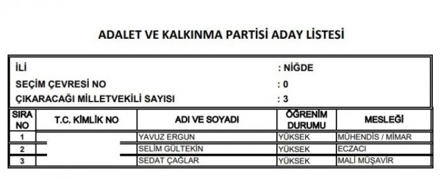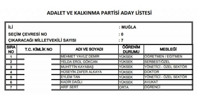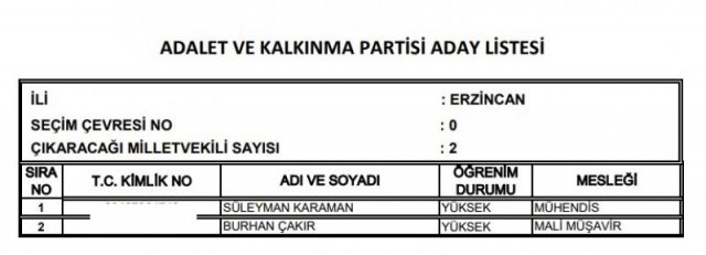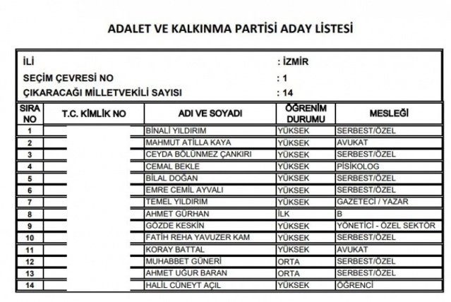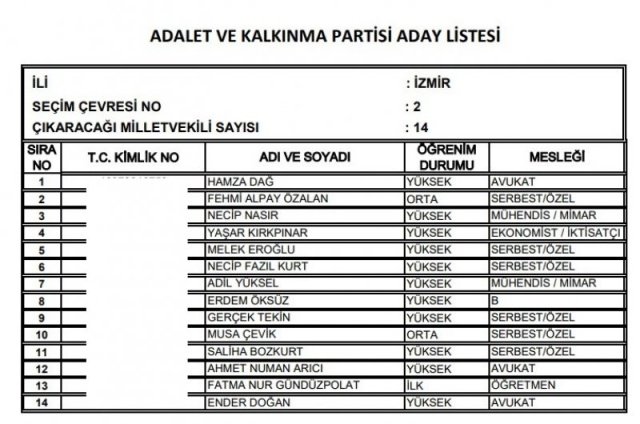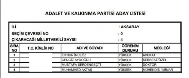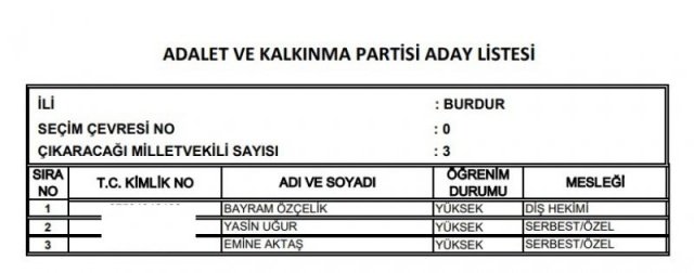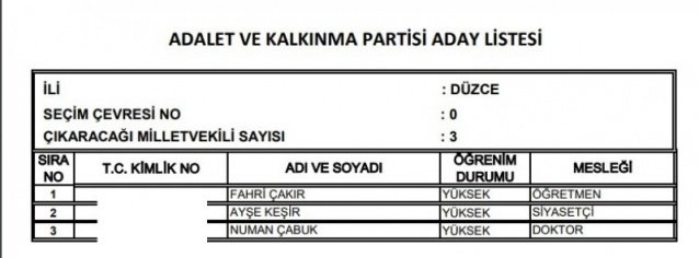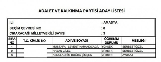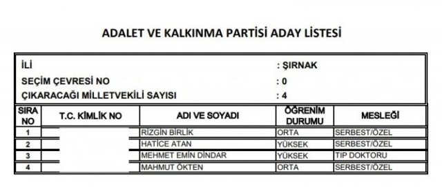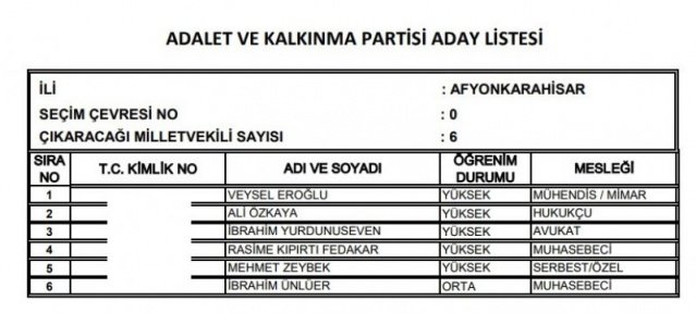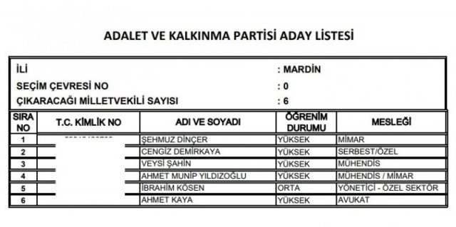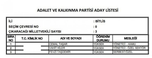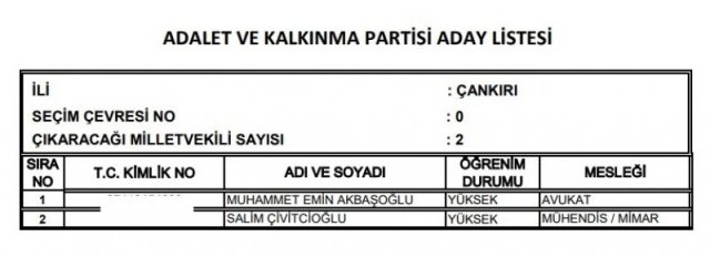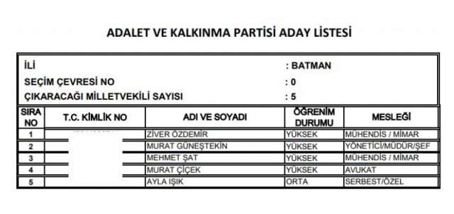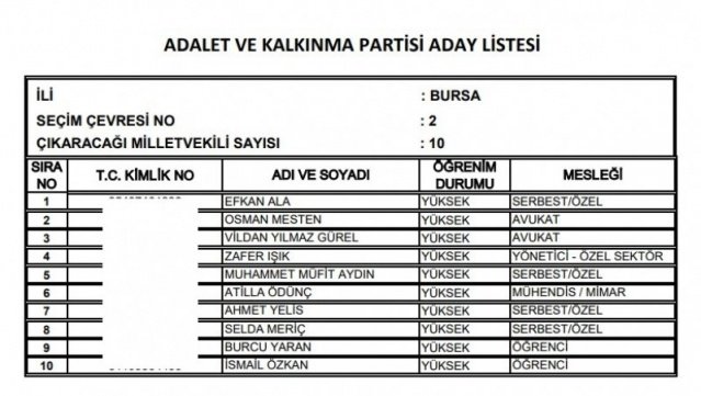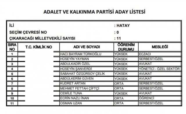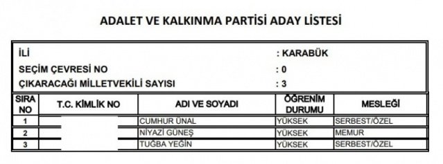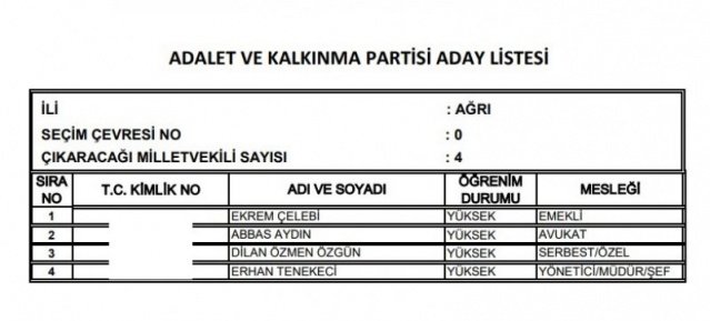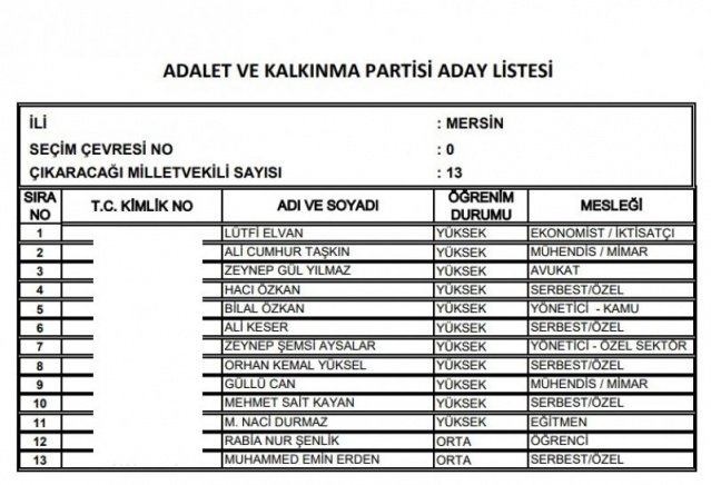 AK Parti'nin aday listesi