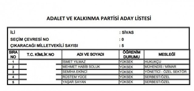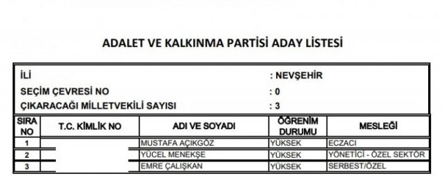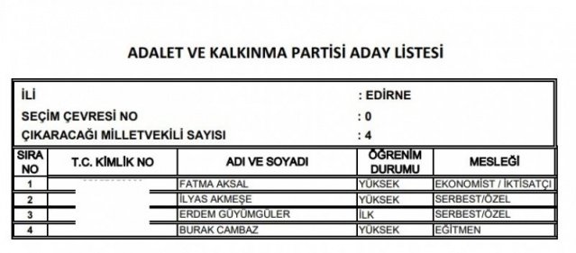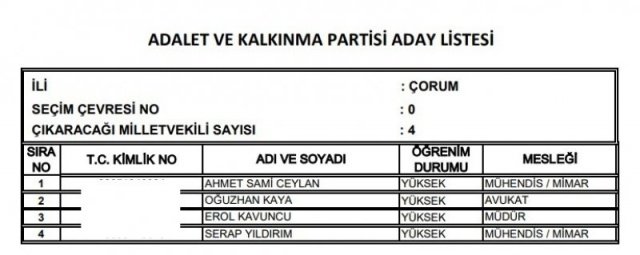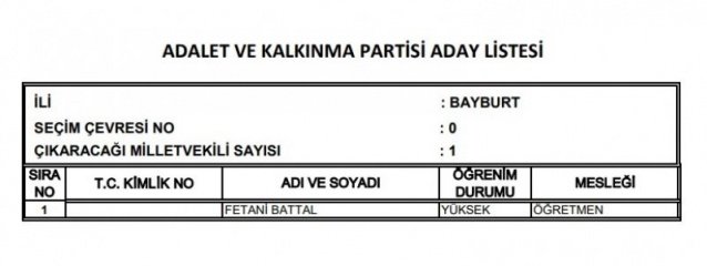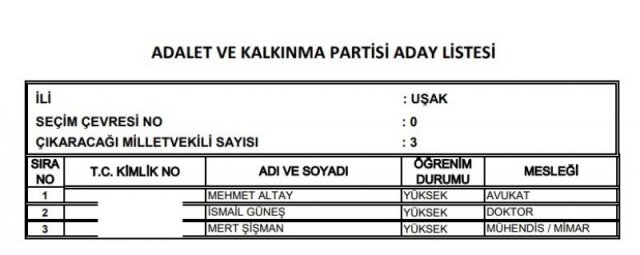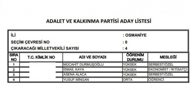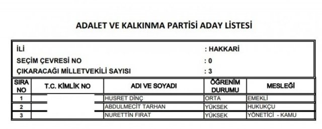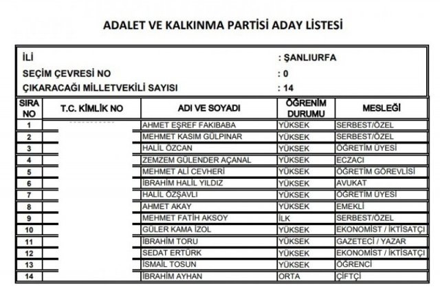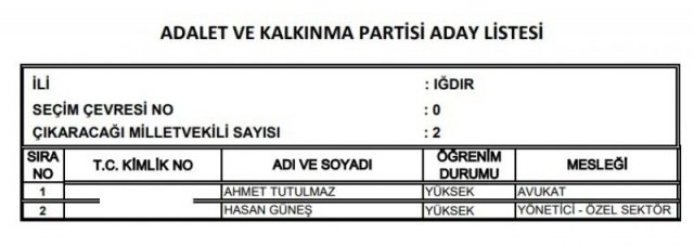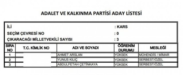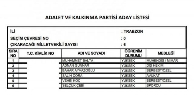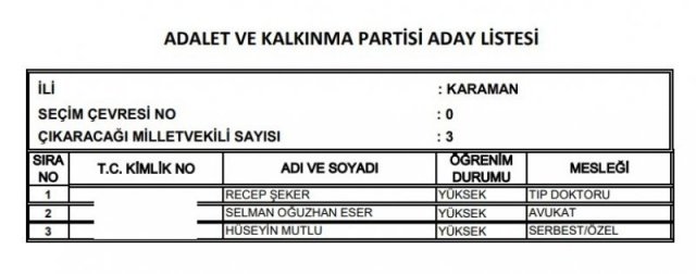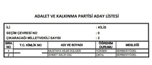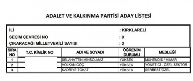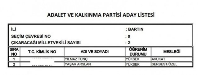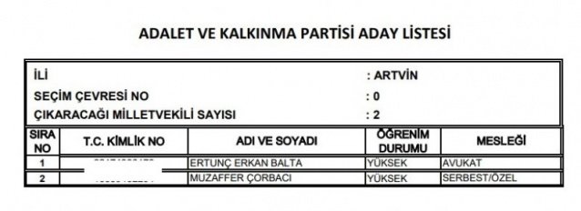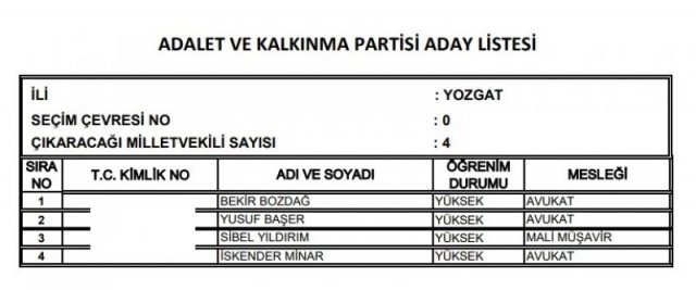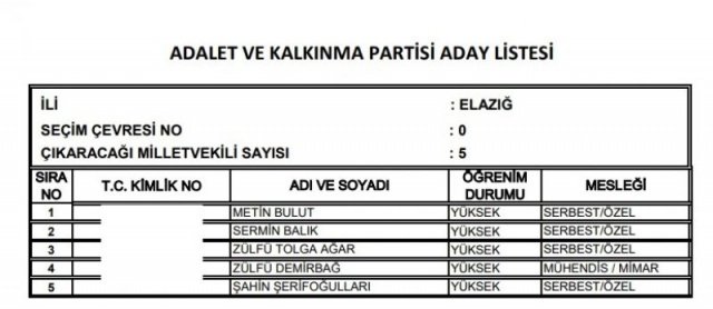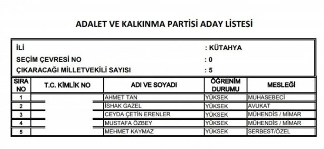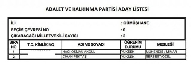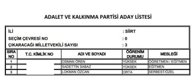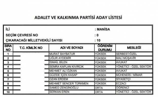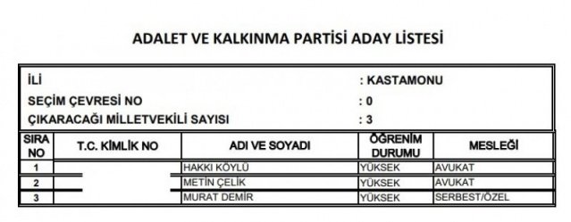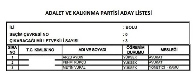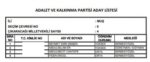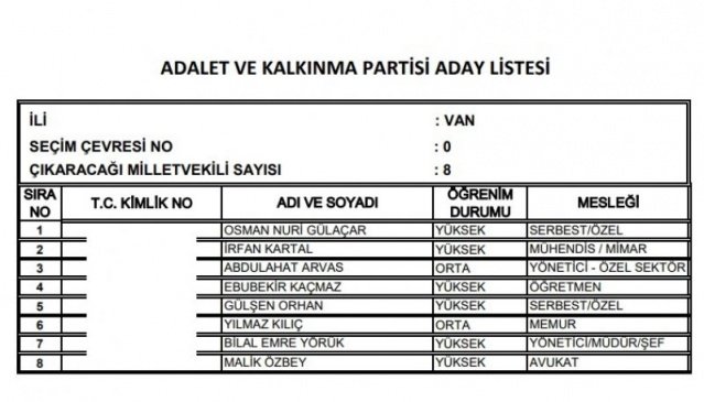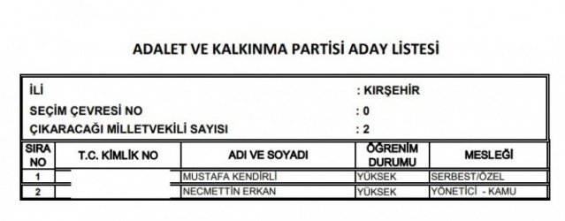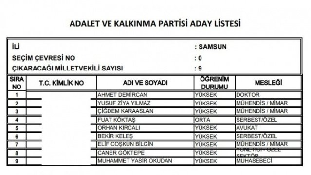 AK Parti'nin aday listesi