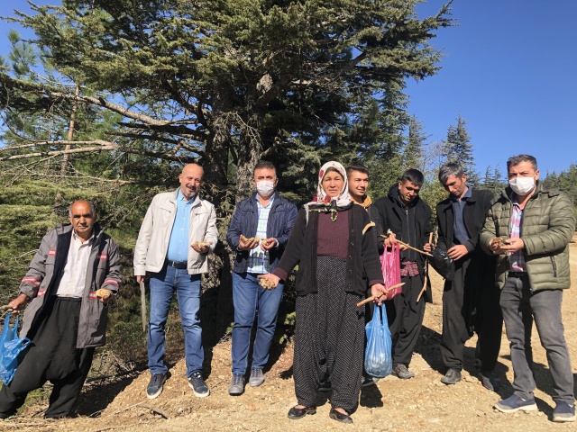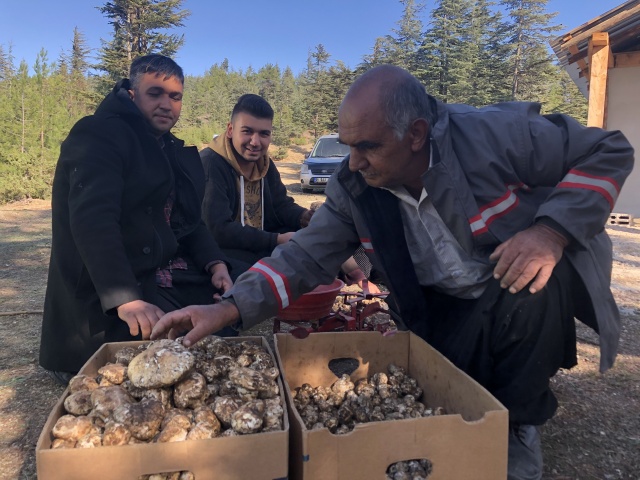 1600 rakımlı Toros dağı eteklerindeki ormanda ellerinde sopalar ile her ağacın çevresini tek tek tarayan köylüleri buldukları altın değerindeki sedir mantarlarını köye gelen aracılarla Adana'daki fabrikalara satıyor.