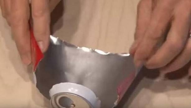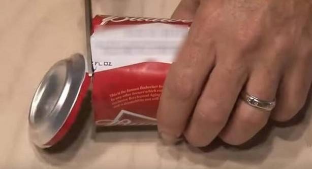 Ardından teneke kutuyu ortadan ikiye ayırıyoruz! İşte böyle!
