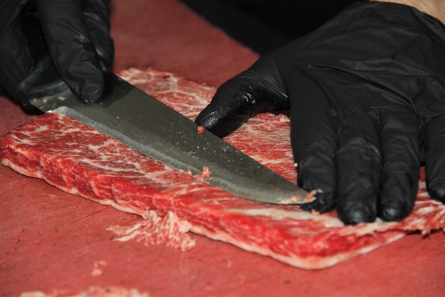 Kasap Mehmet Günbey ise hayvanların İç Anadolu bölgesinde nemsiz bir ortamda yetiştirdiklerini belirterek, sözlerini şöyle sürdürdü: “Bu hayvanların stressiz yetiştiği ortam -10 ile +10 derece arasındadır. Orada arpa, mısır ve özel kendimize ait karışımlarımızın olduğu yemlerle besleniyor. Etlerin elde edildiği hayvanlardan biri de Japon ırkı. Şu an biz bunu kendimiz besliyoruz. Onların yöntemlerinden biraz farklı besliyoruz. Türkiye’nin birçok yerinden talep geliyor. Mesela müşterilerimizin uçak biletlerini alıyoruz, geliyorlar ve etin tadına bakıyorlar. Beğeneceklerine kesin eminiz. Alışverişini yapıp tekrar uçağına bindirip müşterilerimizi memleketlerine gönderiyoruz. İsrail’den, Katar’dan, Dubai’den gelen talepler çok. Bazen müşterilerimiz espri amaçlı olarak arabalarının anahtarlarını getirip et ile araba takası yapmaya çalışıyorlar.”
