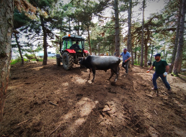 Bursa'nın dağlarında başlarında çoban olmadan yabani olarak yetişen danalar kurban öncesi sahipleri tarafından uyuşturucu iğneyle yakalanıyor. Yerli ırk yabani danaların yakalandığı anlar film sahnelerini aratmadı.