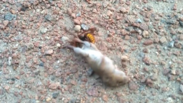 İşte dev eşek arısının inanılmaz fare avı...