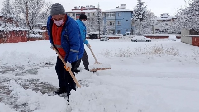 Sabah saatlerinde işyerlerini açan esnaflar, dükkanlarının önünü temizleme telaşına düşerken; Elbistan Belediyesi ekipleri de yollarda ve kaldırımlarda kar temizliği yaptı. Gece boyunca mesai yapan ekipler, yollarda kar kürüme çalışması yaptı. Günün ilk ışıkları ile birlikte kar mesaisine devam eden ekipler, kar savurma aracı ile vatandaşların yoğun olarak bulunduğu caddelerin kaldırımlarındaki karı temizledi. İşçiler de ellerindeki küreklerle biriken karları temizledi.