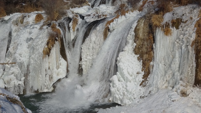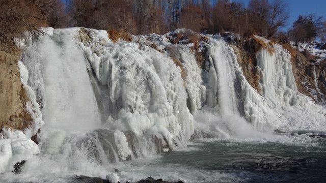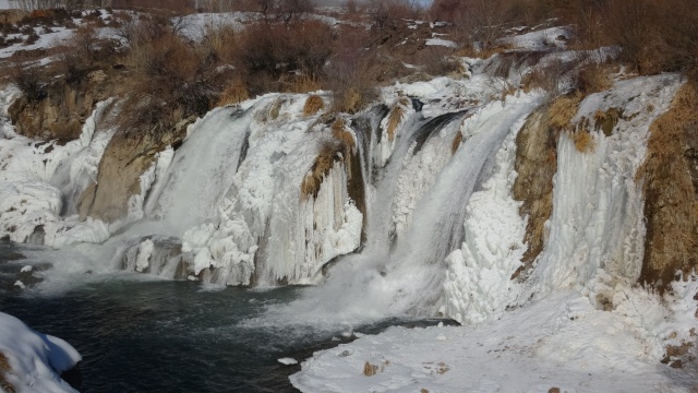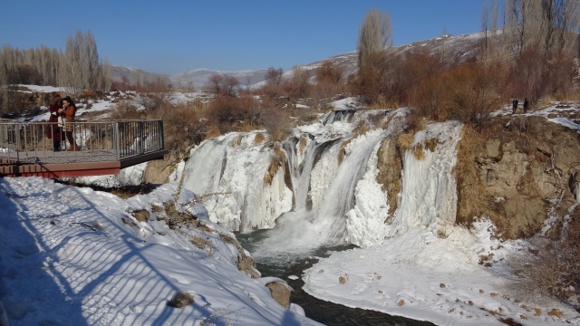 Yaklaşık 20 metre yükseklikten akan şelalenin buzla kaplı görüntüsü, seyrine doyumsuz görüntüler oluşturdu. Yılın her döneminde büründüğü farklı güzelliklerle ziyaretçilerini kendisini hayran bıraktıran Muradiye Şelalesi, giydiği buzdan gelinliğiyle ilgi odağı oldu.