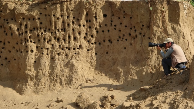 Bunu fark eden vatandaşların toprak almaya ara verdiği tepe, yüzlerce kırlangıç yuvasıyla vatandaşların yanı sıra fotoğraf tutkunlarının mekanı haline geldi.