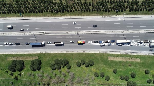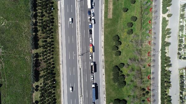 Koronavirüs tedbirleri kapsamında trafikte sürücü ve yolcuların kimlik kontrollerin denetimi devam ediyor. TEM Otoyolundaki denetimde kilometrelerce araç kuyruğu oluştu.