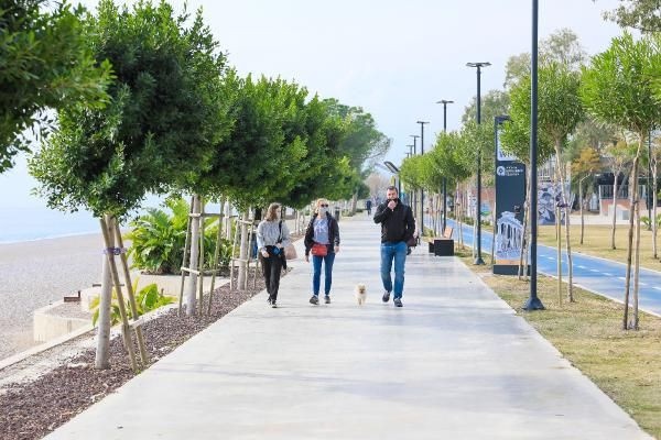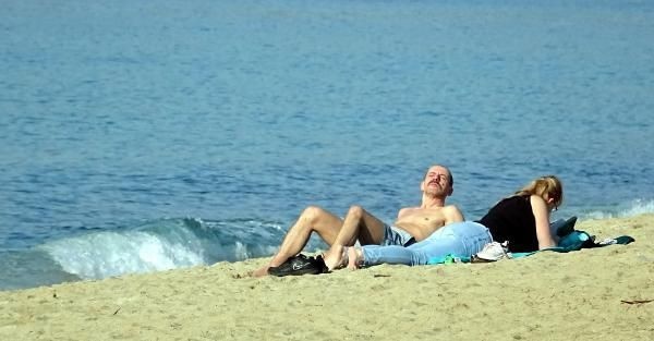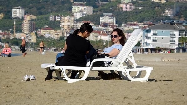 Hava sıcaklığının 17, deniz suyu sıcaklığının 20 dereceyi gördüğü kentte, turistler kısıtlamadan dolayı kendilerine kalan sahilin ve denizin keyfini sürdü.