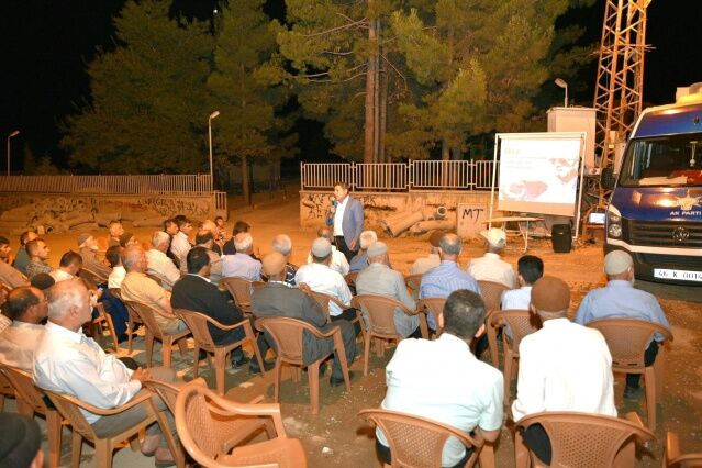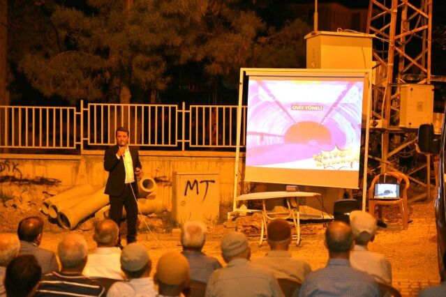 Okumuş, meydanlara kurulan ekranlarla eski Türkiye’yi yeni Türkiye'yi anlatıyor