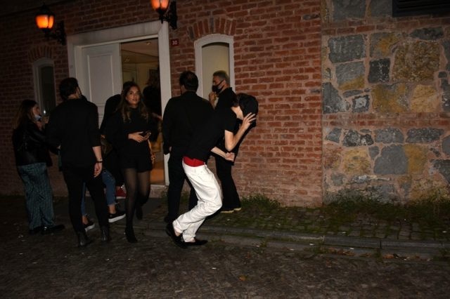 Komşuların şikayeti üzerine partiyi haber alan polis, villaya baskın yaptı. Partiye katılanların sosyal medyada paylaşım yapmaması için girişte telefonlarına el konduğu ortaya çıktı. Ev partisinden çıkanlar yüzlerini bu şekilde gizlediler.