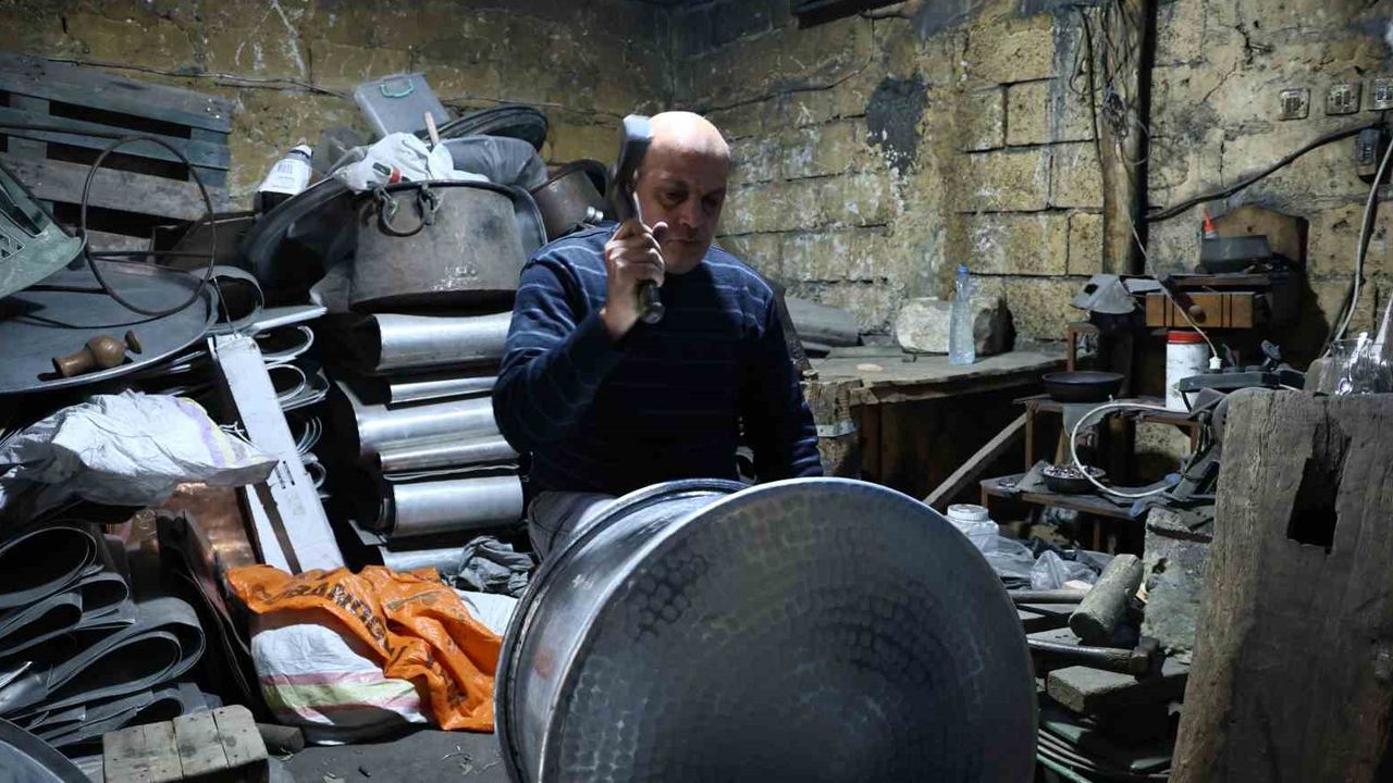 "Burada kendi imalatımız olan alüminyum kazan ve bakraç üzerine çalışıyoruz. Otuz yıldan beri bu işi yapıyorum, gücümüzün yettiği yere kadar da devam edeceğiz. Kırsal kesimdeki köylü insanlarımızdan şehir dışındaki vatandaşlara kadar her tarafa gönderiyoruz. Kazanların ebatları değişiyor; büyüğü küçüğü var. En büyük olanı 110 santimetre. Kaç tane yaptığımı da sayamadım, binlerce diyebilirim. Malzeme bize ham hâlde geliyor. Birleşmesi, zıvanası derken aşaması çok. Akşama kadar çekiş alıyoruz burada. Çalışmadığımız zaman daha çok yoruluyoruz çünkü vücut istiyor. Alüminyumun kilosunu burada 350-400 lira civarında alıyoruz. Genelde Elazığ ve Adıyaman tarafından da isteyen çok. Ama eleman yok. En büyük sıkıntımız bu. Şu anda bütün meslek dallarında sıkıntı var. Gençler çalışmayı sevmiyor, sadece bu işte değil, tüm işlerde durum aynı."