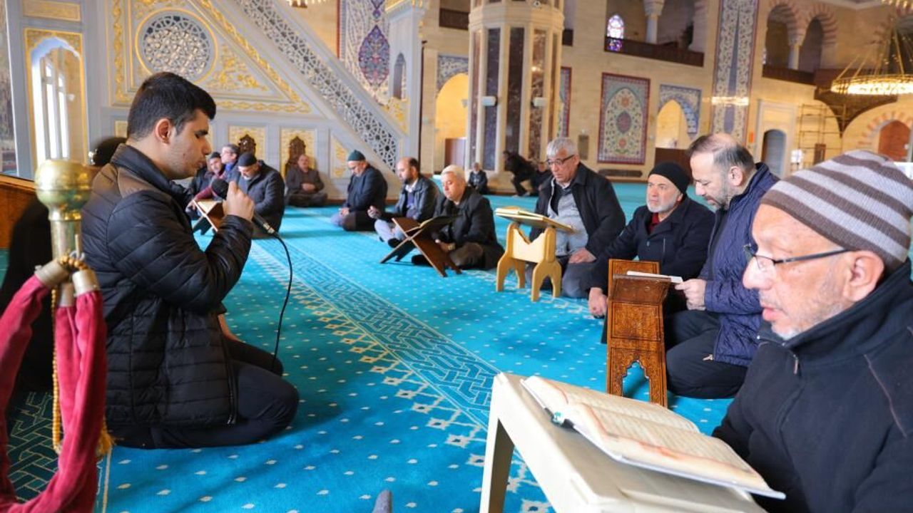 Kahramanmaraş’ta yaklaşık 10 bin kişilik kapasitesiyle Türkiye’nin en büyük camileri arasında yer alan Abdülhamid Han Camii’nde Ramazan ayı dolu dolu yaşanıyor. Vakit namazları ve teravihlerin yanı sıra camide mukabele geleneği de sürdürülüyor. 7 yıldır görme engelli hafızlar Mustafa Çamsarı, Celal Gök ve Muhammet Yiğit Karaokur, Ramazan ayında öğle namazı öncesi camiye gelerek Kur’an-ı Kerim tilavetinde bulunuyor. Hafızların ezbere okuduğu Kur’an-ı Kerim mukabelesini camide bulunan cemaat ise takip ediyor.