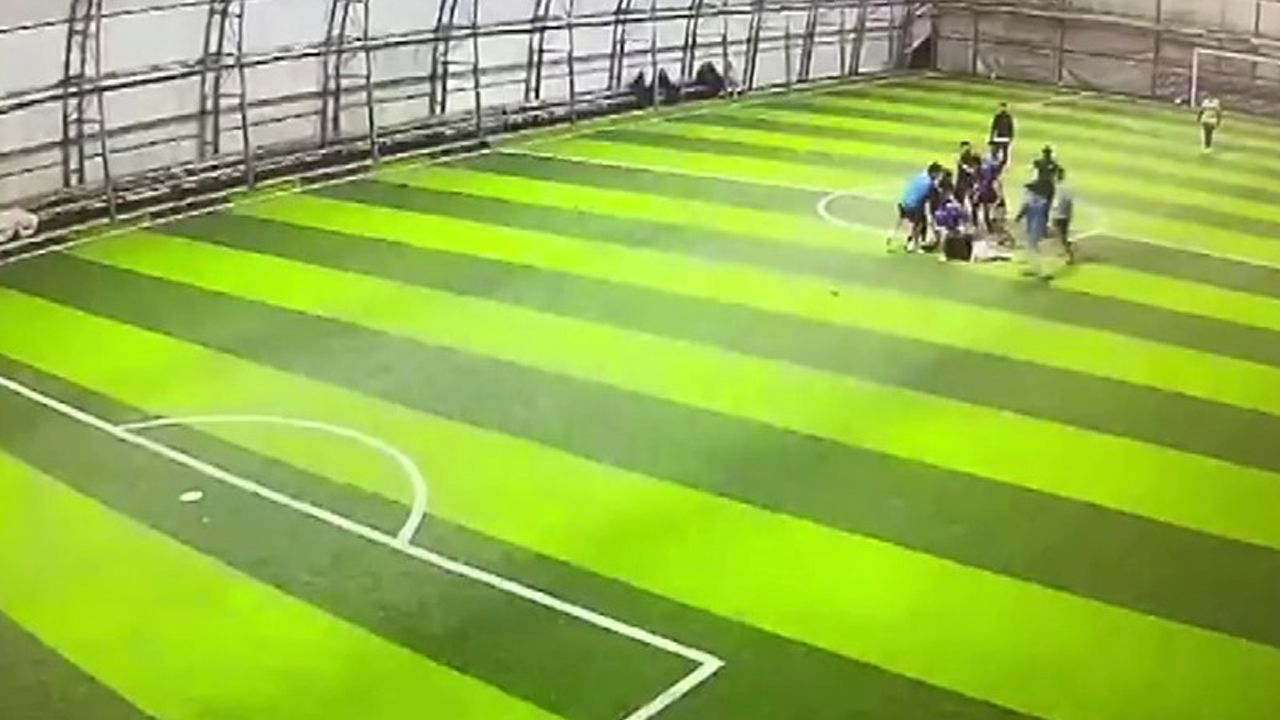 Kavga anı ise halı sahanın güvenlik kamerasına saniye saniye yansıdı. Görüntülerde 2 kişinin tartışması sonrasında da meydana gelen tekme tokatlı kavga yer alıyor.