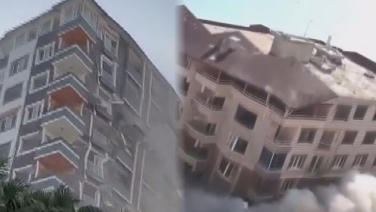 Hatay'da meydana gelen deprem felaketi sonrasında, kolonlarına zarar verilerek iş makinesiyle yıkılan üç bina tamamen enkaza döndü.