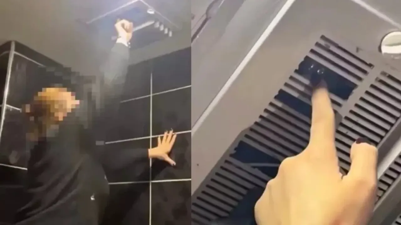 Çalışanlar, tuvaleti kullandıkları sırada havalandırma bölümüne gizlenmiş bir kamera olduğunu fark etti. Durum üzerine çalışanlar, havalandırma bölümüne sıkıştırılmış olan kamerayı yerinden çıkardı.