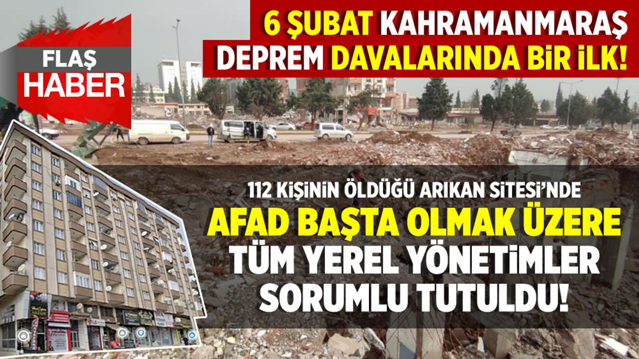 Kahramanmaraş merkezli 6 Şubat depremlerinde yıkılarak 112 kişinin hayatını kaybettiği Arıkan Sitesi davasında, bilirkişi raporu kamu görevlileri aleyhine çarpıcı tespitler içeriyor. Dosyaya sunulan, mimar, şehir plancısı ve mühendislerden oluşan beş kişilik bilirkişi heyetinin raporunda, AFAD başta olmak üzere raporun dağıtımı yapılan tüm kamu kurum ve kuruluşlarının il müdürlükleri veya yerel yönetim yöneticilerinin ayrı ayrı sorumlu oldukları vurgulandı.