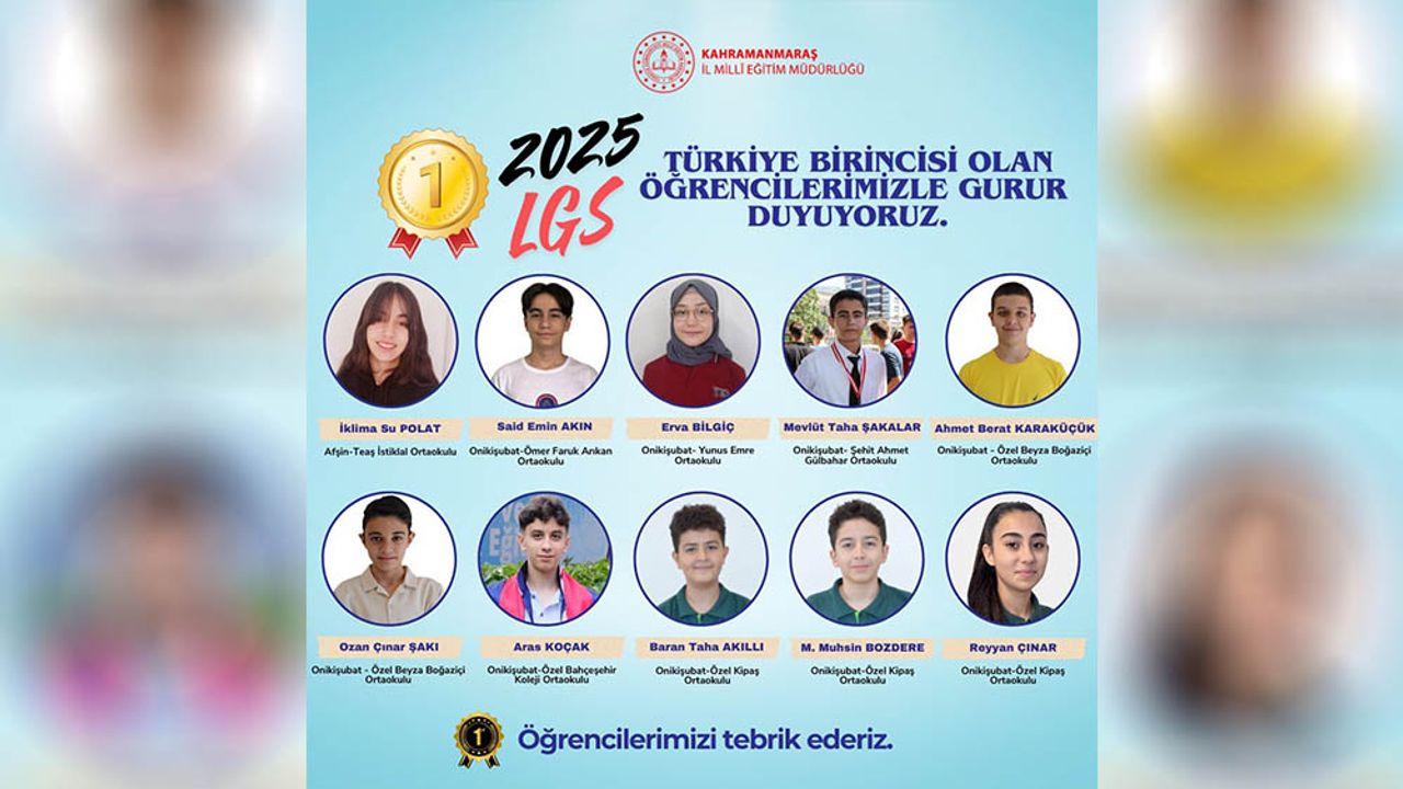 İl Milli Eğitim Müdürü Erhan Baydur, "LGS’de 500 tam puan alarak bizleri gururlandıran 10 öğrencimizi yürekten tebrik ediyoruz! Başarınızla Kahramanmaraş’ın eğitimdeki gücünü bir kez daha gösterdiniz. Emeği geçen öğrenci, aile ve öğretmenlerimizi kutluyoruz" açıklamasını yaptı.