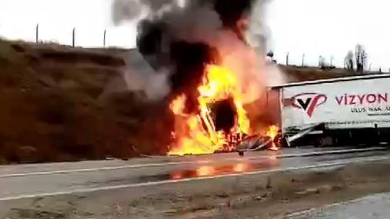 Tır kazası sonrası çıkan yangın ise bir vatandaşın cep telefonu kamerası ile kaydedildi.
