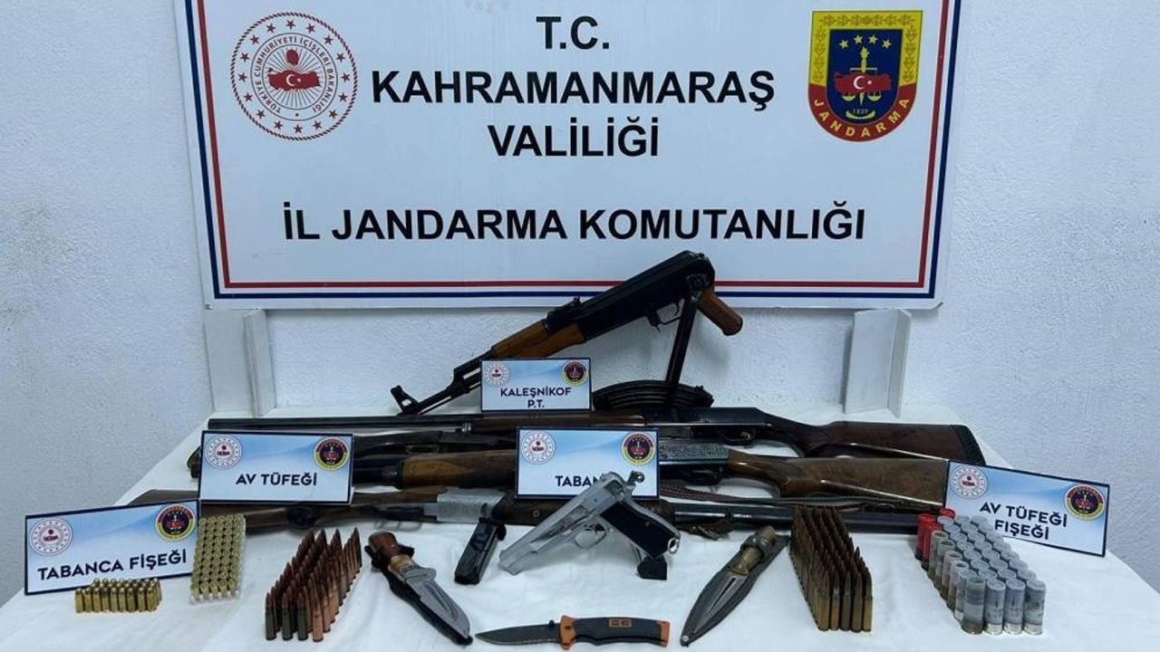 Alınan bilgiye göre, İl Jandarma Komutanlığı ekipleri, Afşin ilçesinde silah ve mühimmat kaçakçılığına yönelik operasyon düzenlendi. Operasyonda şüpheliler İ.Ö. (63), M.A. (51), K.A. (75) ve M.A. (52) gözaltına alındı. Şüphelilerin adreslerinde yapılan aramalarda 1 kalaşnikov piyade tüfeği, 1 ruhsatsız 9 mm tabanca, 2 ruhsatsız av tüfeği, 47 kalaşnikov piyade tüfeği mühimmatı, 75 tabanca mühimmatı, 33 av tüfeği fişeği, 2 tabanca şarjörü, 3 bıçak ve 56 kilo 310 gram da tütün ele geçirildi.