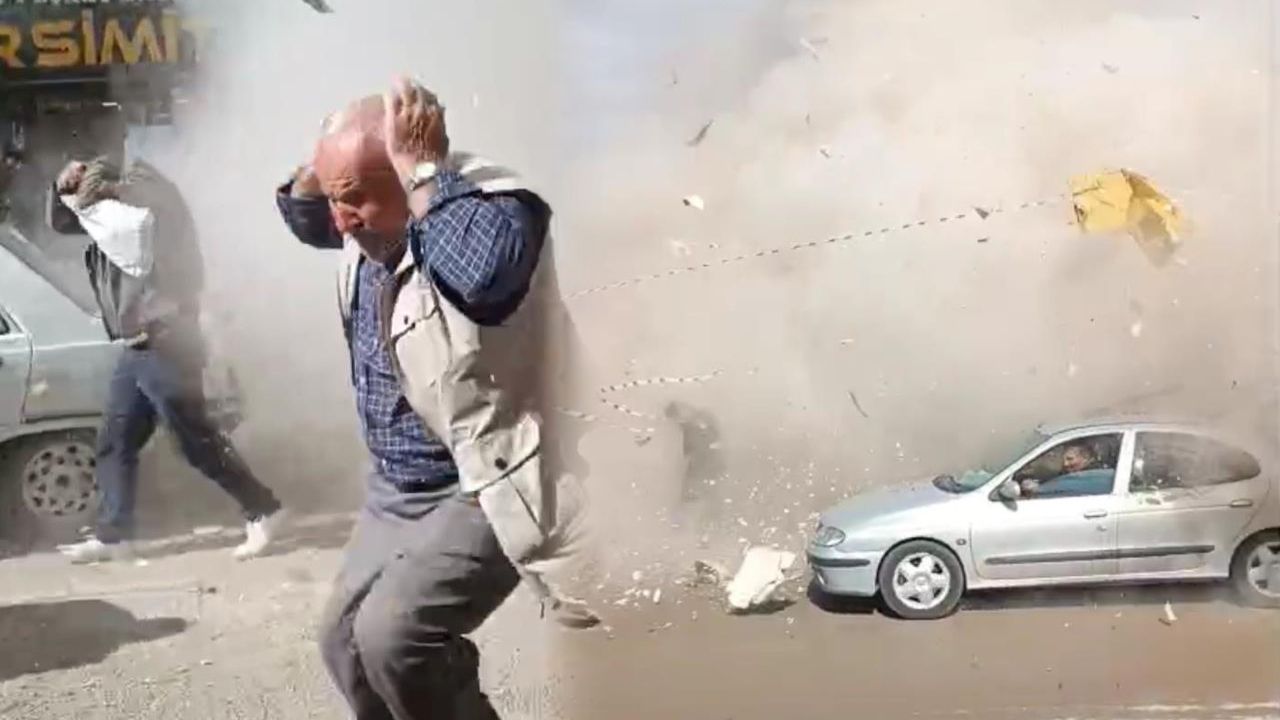 Kopan moloz ve beton parçaları çevredeki iş yerlerine ve yola kadar sıçradı. O sırada seyir halinde ilerleyen araçların üzerine düşen parçalar, sürücüler arasında panik oluşturdu. Araçlarda maddi hasar meydana gelirken, çevredeki vatandaşlar büyük korku yaşadı. O anlar ise kameralara yansıdı.