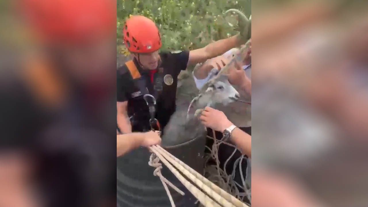 Kahramanmaraş'ta drenaj kuyusuna düşen keçi itfaiye ekiplerince kurtarıldı.