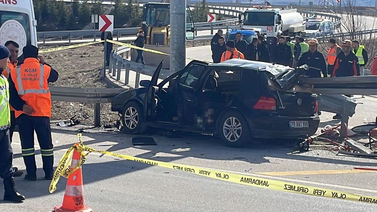 Kaza, Karaman-Konya karayolunun 31. kilometresi Kazımkarabekir ilçesi yakınlarında meydana geldi. Edinilen bilgiye göre, Ali Günay (43), yönetimindeki 70 AAT 666 plakalı Volkswagen marka otomobil sürücüsünün direksiyon hakimiyetini kaybetmesi sonucu kontrolden çıkarak yol kenarındaki demir bariyerlere ok gibi saplandı. Diğer sürücülerin ihbar üzerine kaza yerine sağlık, itfaiye, AFAD, polis ve jandarma ekipleri sevk edildi. Kaza yerine varan ekipler sürücü ve eşi Ayşe Günay’ın (36), olay yerinde feci şekilde can verdiğini belirledi.