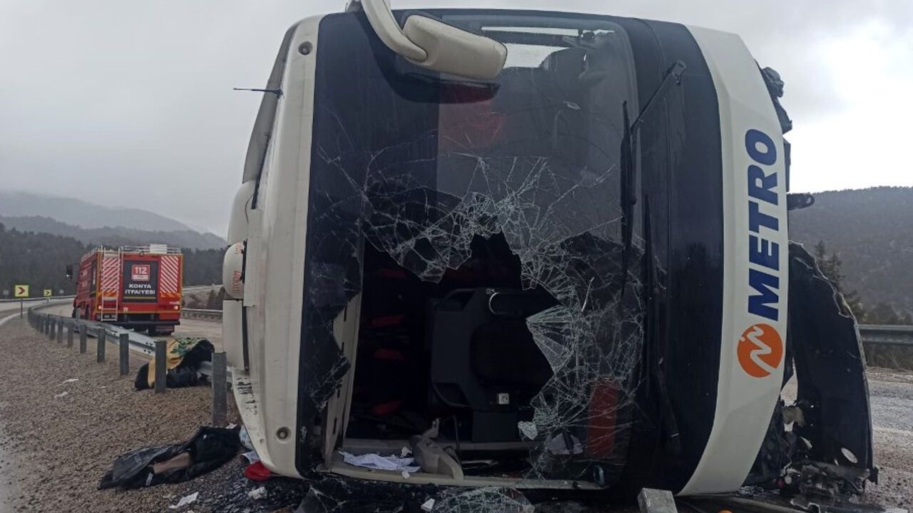 Konya’da yolcu otobüsü devrildi: 15 yaralı