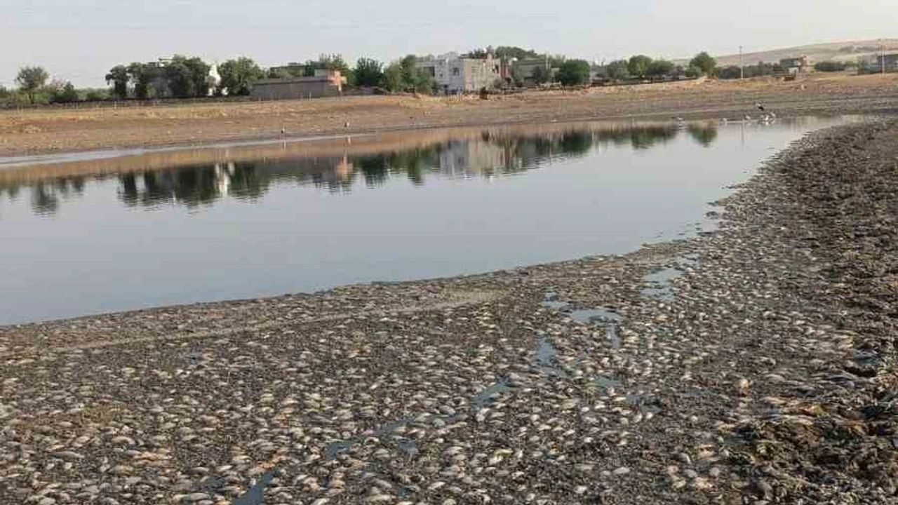 Mazıdağı ilçesine bağlı Şanlı köyünde bulunan göletin suyu kuraklık nedeniyle çekildi. Suyu çekilen gölette bulunan binlerce balık telef oldu.