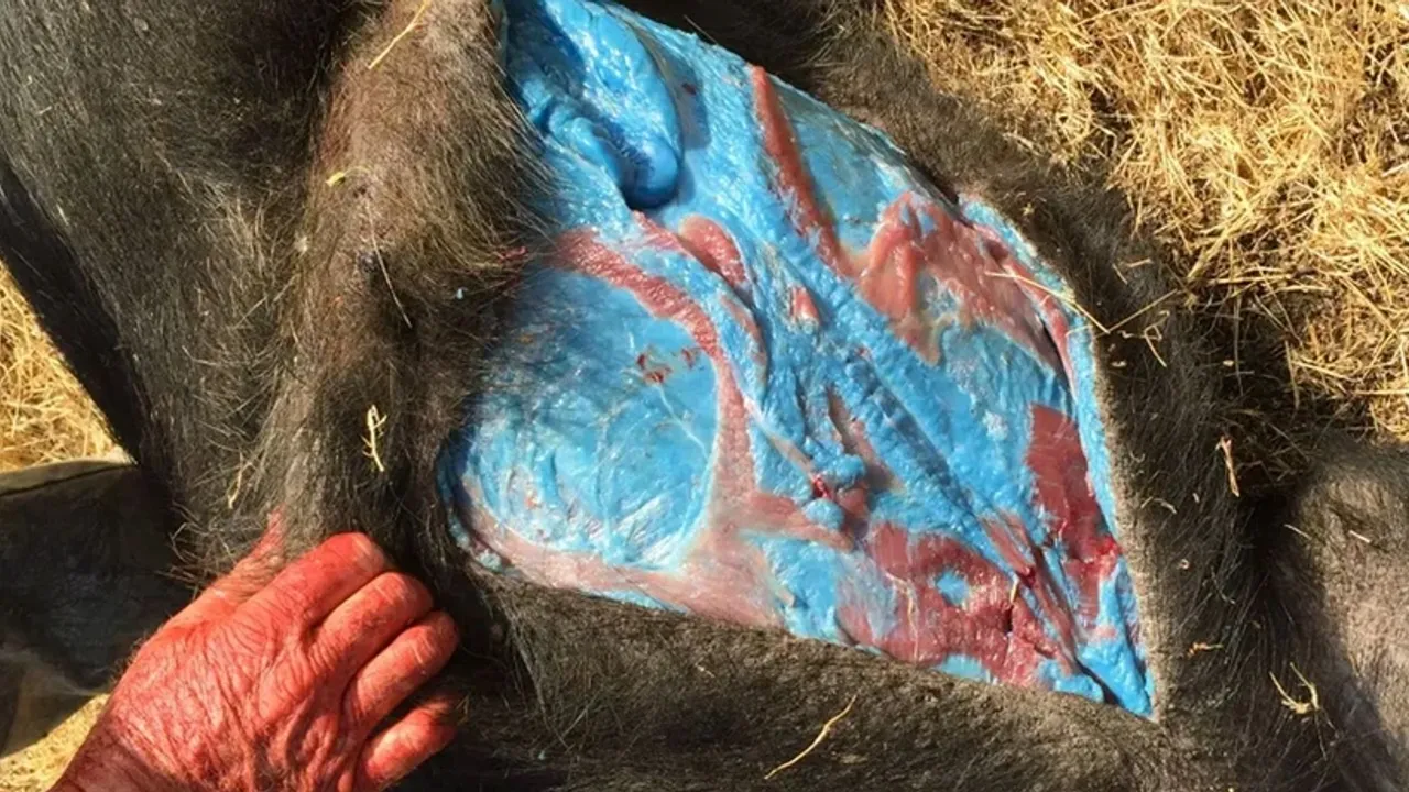ABD'nin San Francisco kentinin güneyinde yaban hayvanlarını avlayan avcılar şoke oldu. Kestikleri domuzun içindeki et fosforlu mavi renkte çıktı. Sadece eti değil, domuzun kasları da mavi renge dönüşmüştü. Dan Burton isimli bir avcı gördüğü ürpertici manzarayı yaban hayatını koruma ekiplerine bildirdi.