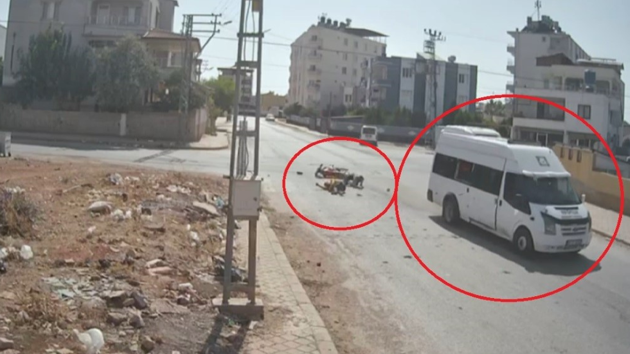 Bahçelievler Mahallesi 323. Sokak’ta seyir halindeki minibüs ile motosikletin çarpıştığı an, güvenlik kameralarına takıldı. Görüntülerde motosikletin hızla gelerek minibüsün yan kısmına çarptığı ve saplandığı görüldü.