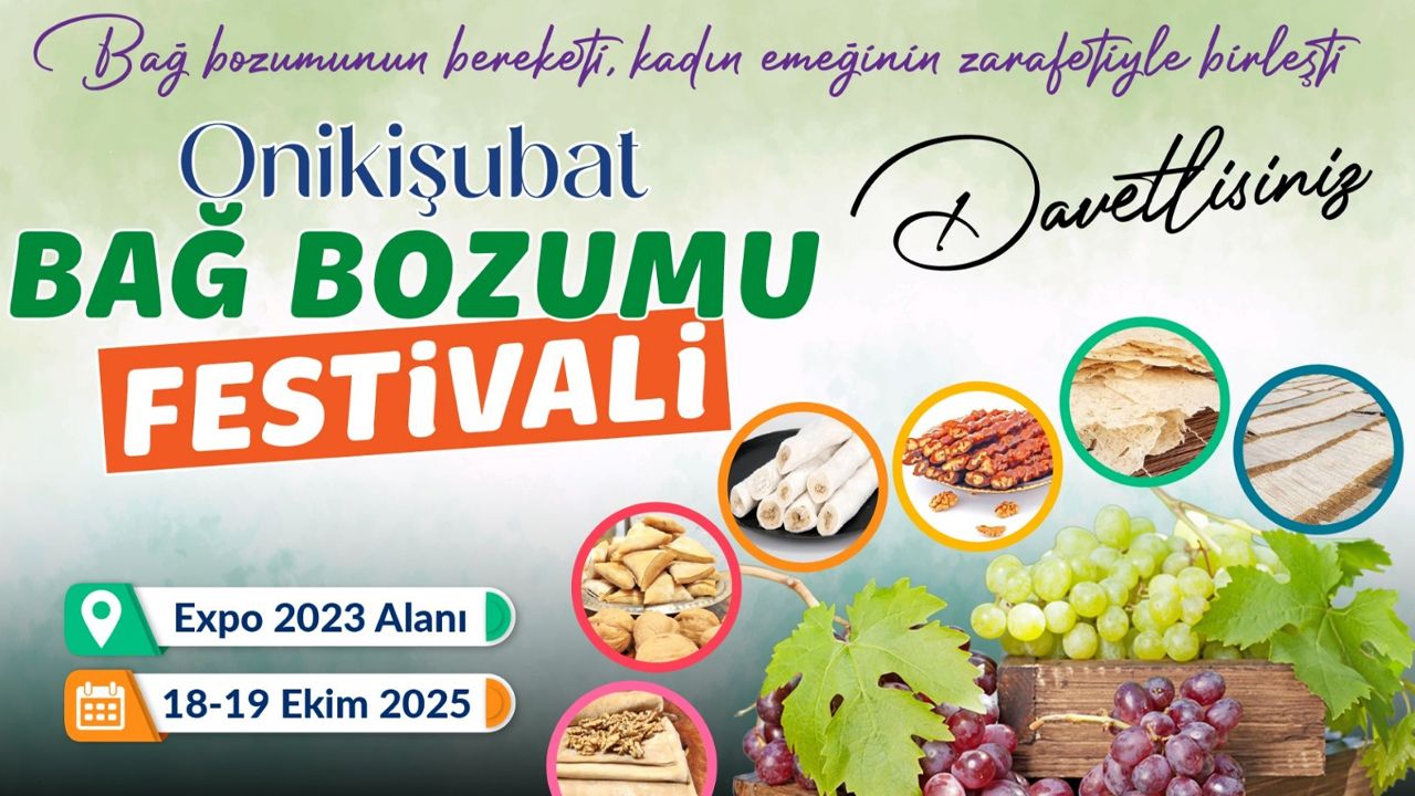 Onikişubat Belediyesi’nin ev sahipliğinde; Kahramanmaraş Ticaret ve Sanayi Odası, Kahramanmaraş İstiklal Üniversitesi ve TOBB Kadın Girişimciler Kurulu Kahramanmaraş Şubesi işbirliğiyle düzenlenecek festival, “Bağ bozumunun bereketi, kadın emeğinin zarafetiyle birleşiyor” sloganıyla gerçekleştiriliyor.