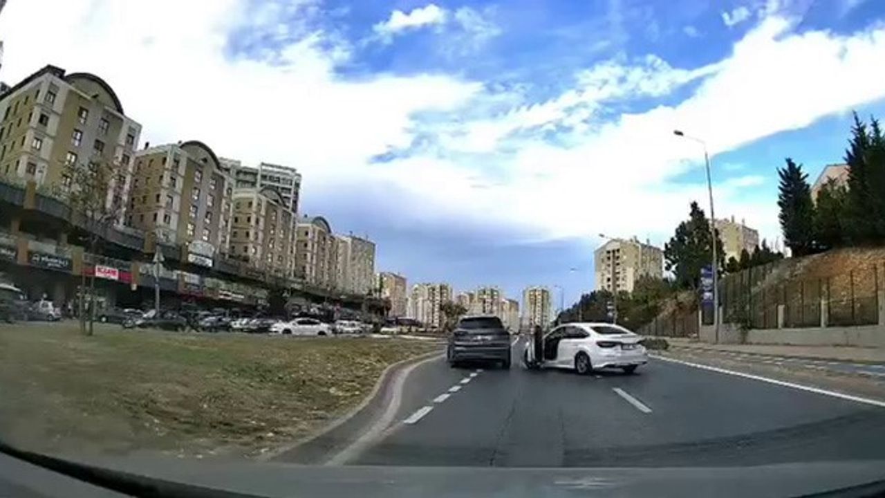 O anlar başka bir aracın kamerasına saniye saniye yansıdı. Görüntülerde, aracından inen sürücünün diğer aracın üzerine yürüdüğü, ardından panikleyen sürücünün gaza basarak şahsı çarptığı ve sürüklediği görülüyor.