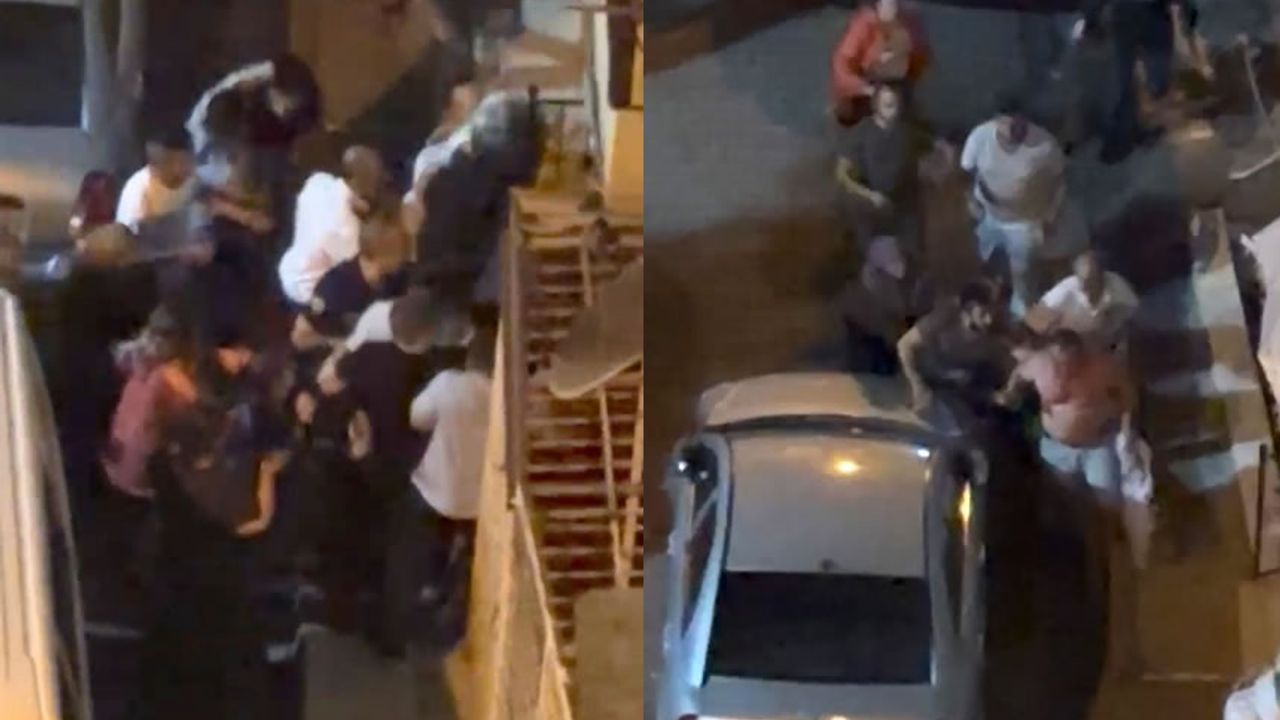 Taraflar uzun süre birbirlerine vururken, sesleri duyan mahalleli de tarafları ayırmak için aşağıya indi. Taraflar bir türlü sakinleşmeyince ortaya meydan kavgasını aratmayan görüntüler çıktı. Tarafların birbirlerine saldırdığı o anlar kameralara anbean yansıdı.