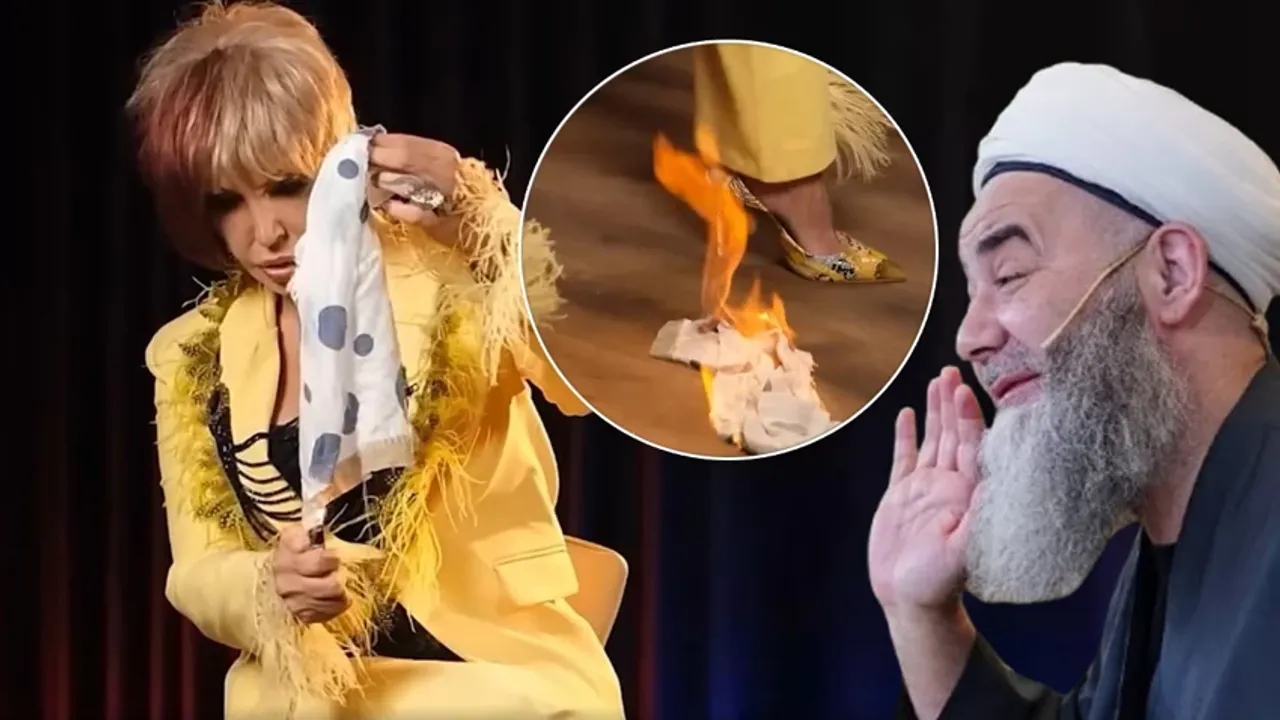 İlk defa böyle bir şey göstereceğim. Gerçekten, insanın yüreğine dokunuyor. 'Cübbeli Ahmet Hoca seni sevmiyor' diyorlar. Niye sevmesin. Sevmese adam bana nişanım da gelip de bohça yollar mı? Yollamaz yani. İnsanlar anlamıyor bunu, duygu selini anlamıyor. Bana Cübbeli Ahmet Hoca, çok heyecanlanıyorum bunu anlatırken, yanmaz kefen gönderdi. Ahiretimi düşünüyor. Yanmaz kefen ve cennete giden takunya... Yanımda, bakın... Sahte olduğunu da düşünmüyorum."