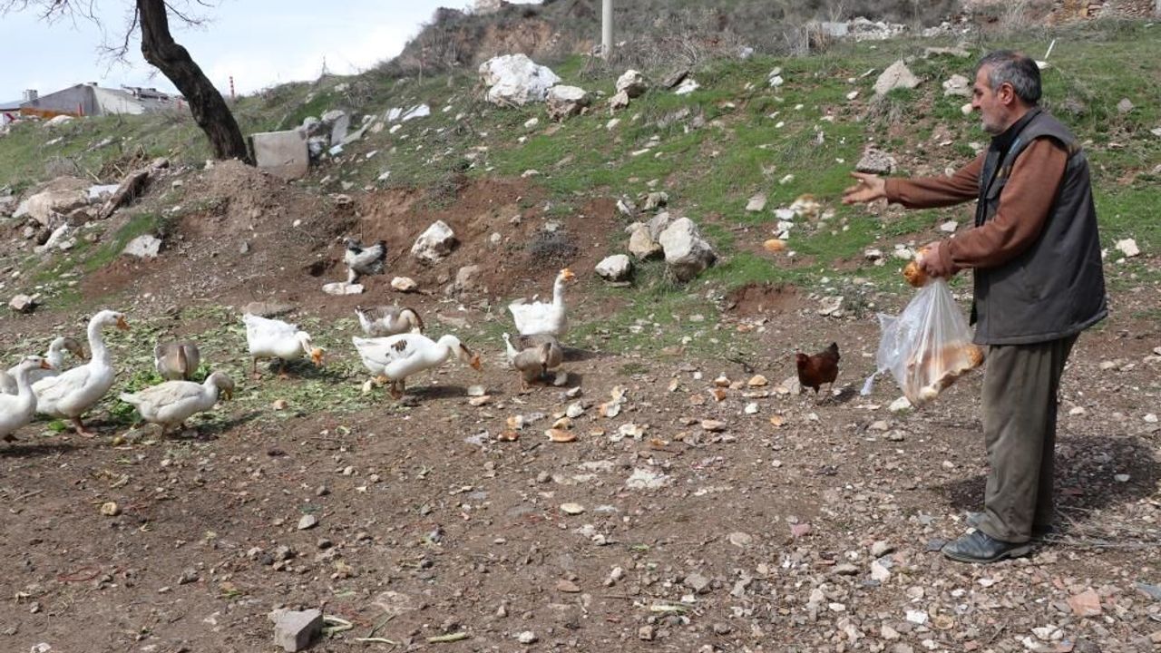 “12 tane kazım var. Yerimiz olmadığı için bu şekilde besliyoruz. Bu kazların mahallede gezmediği yer yok. Geçtiğimiz gün alt geçide bile girdiler.”