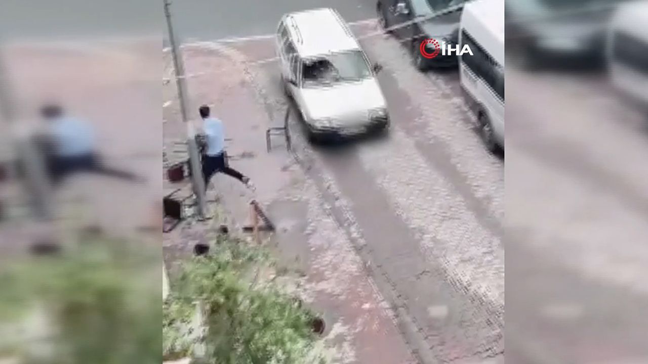 Esenyurt’ta iki grubun sokak ortasındaki taş ve sopalı kavgası ortalığı savaş alanına çevirdi. Arabayı tartıştığı adamların üstüne süren sürücüye karşı taraf taş fırlatırken o anlar kameraya yansıdı.